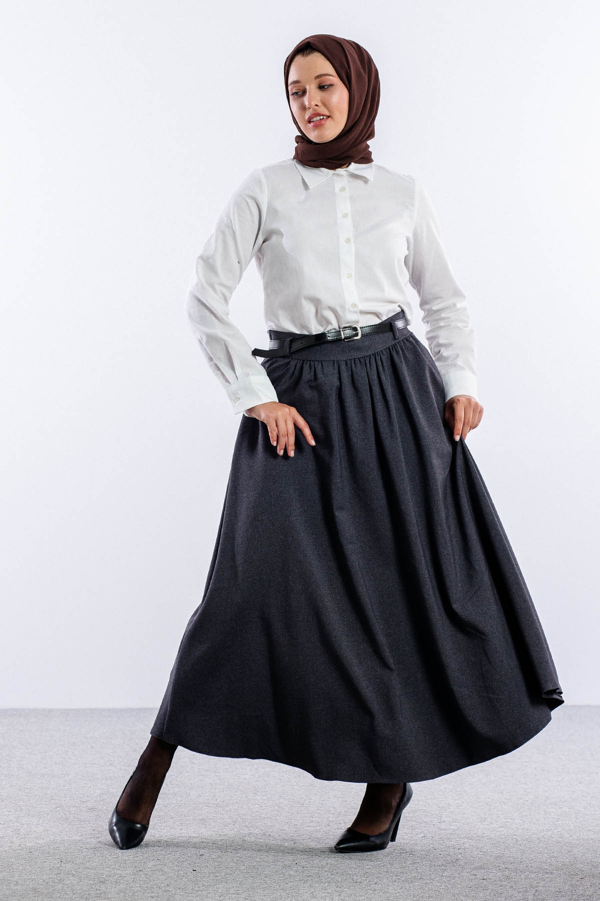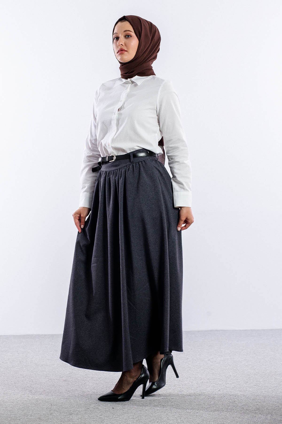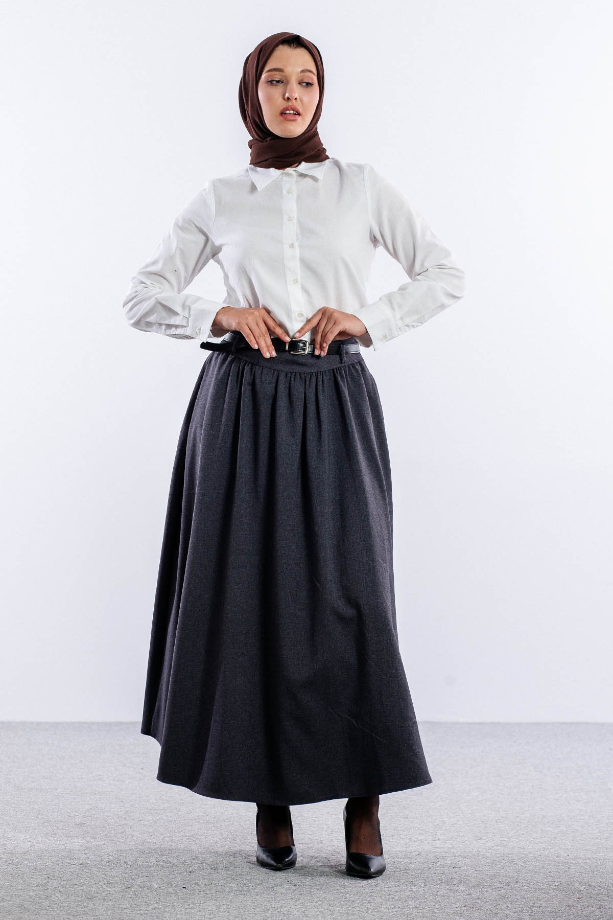 3672 Etek 38-48 Kis Kumas - Gri