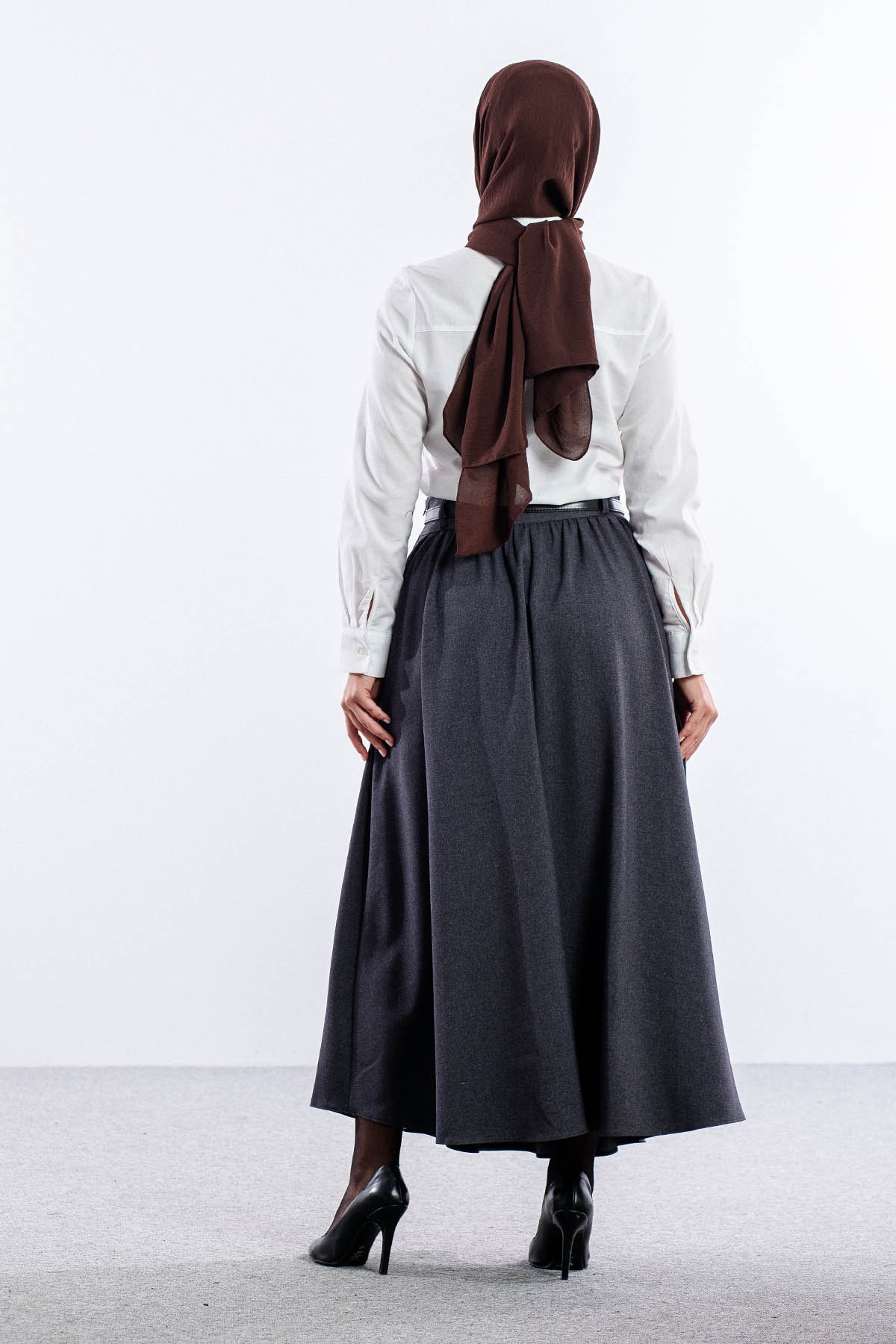 3672 Etek 38-48 Kis Kumas - Gri - 2