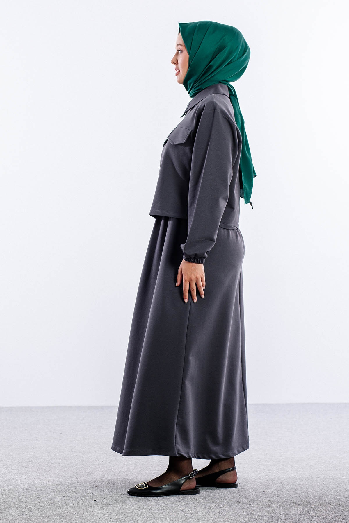 4014 2li Elbise Takim 42-48 - Gri - 4