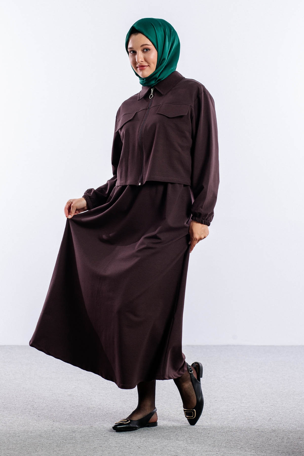 4014 2li Elbise Takim 42-48 - Kahve - 4