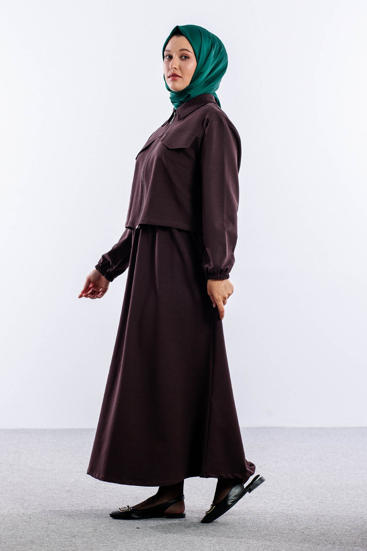 4014 2li Elbise Takim 42-48 - Kahve - 2