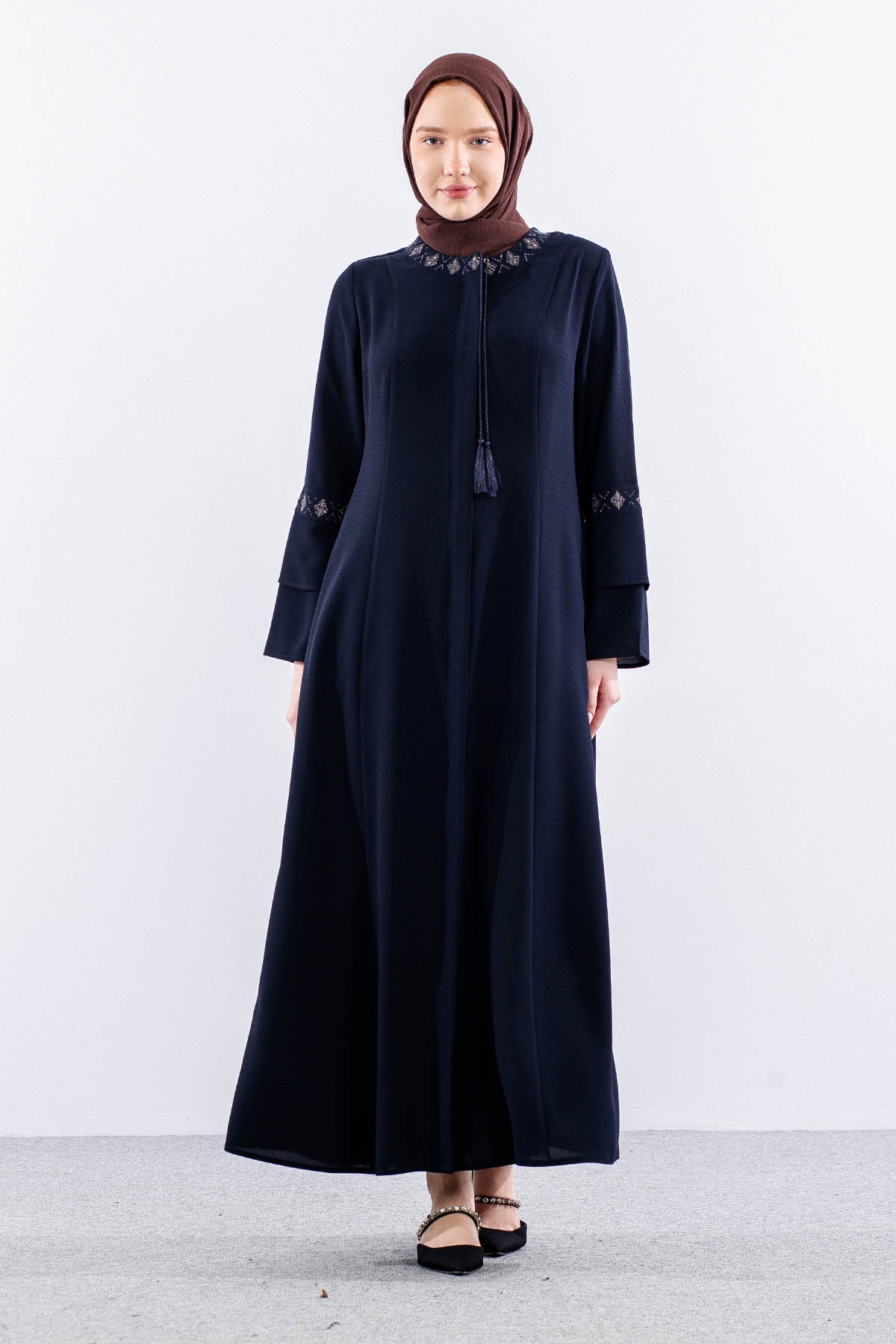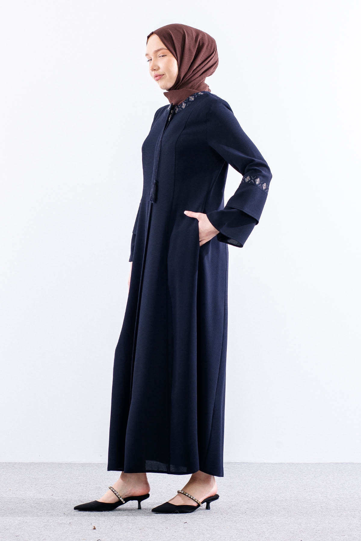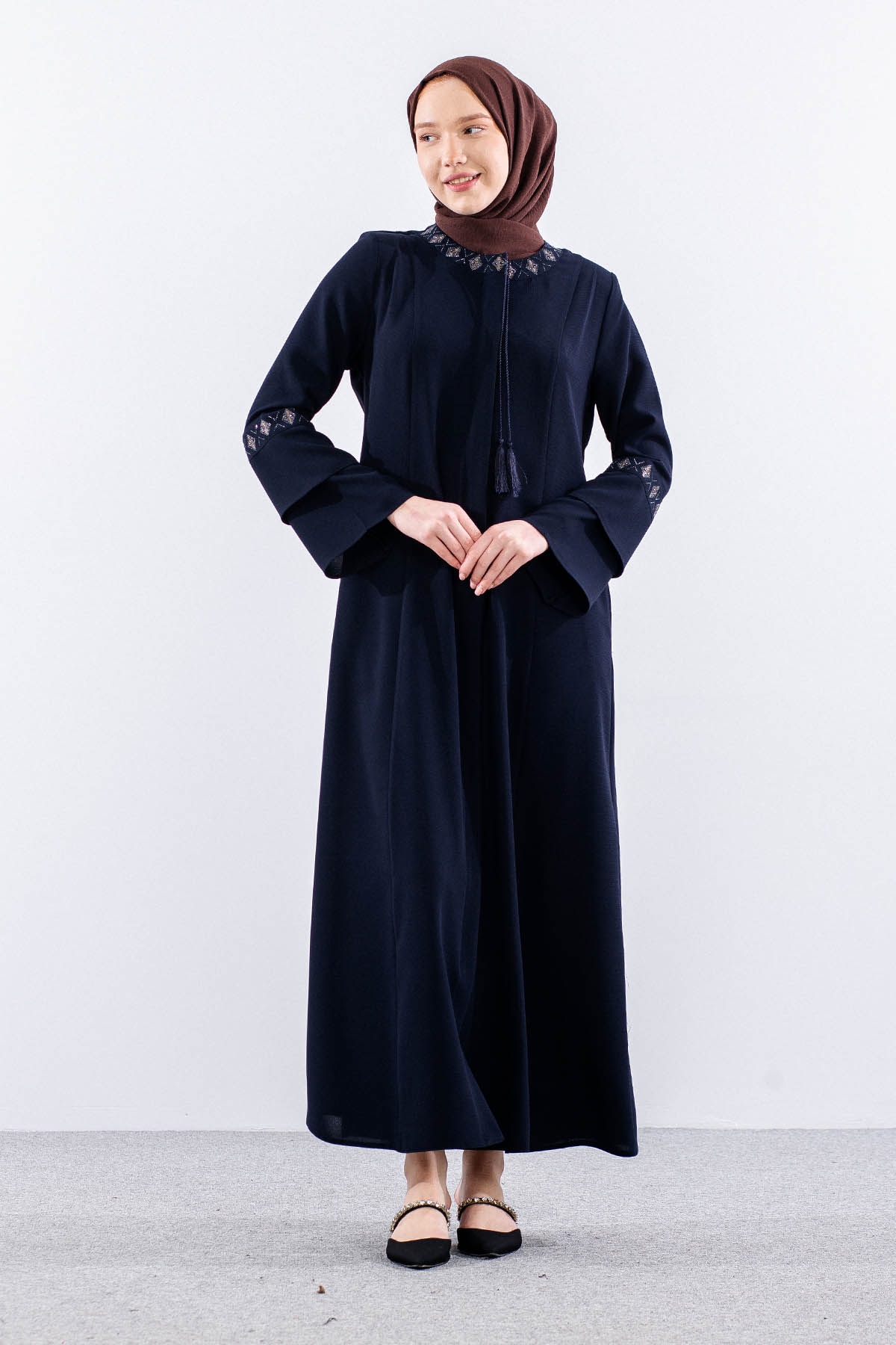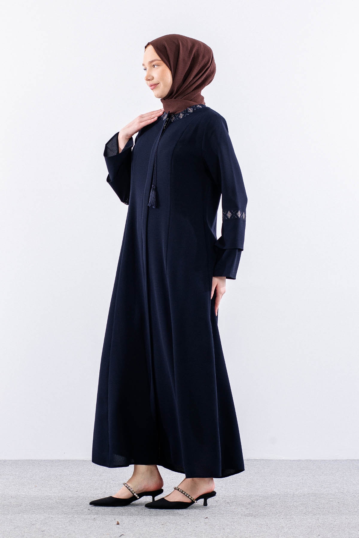 452 Ferace 44-54 Erva Petek Yaz Kumaş - Lacivert - 2