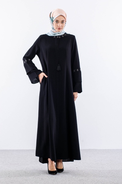 452 Ferace 44-54 Erva Petek Yaz Kumaş - Lacivert - 4