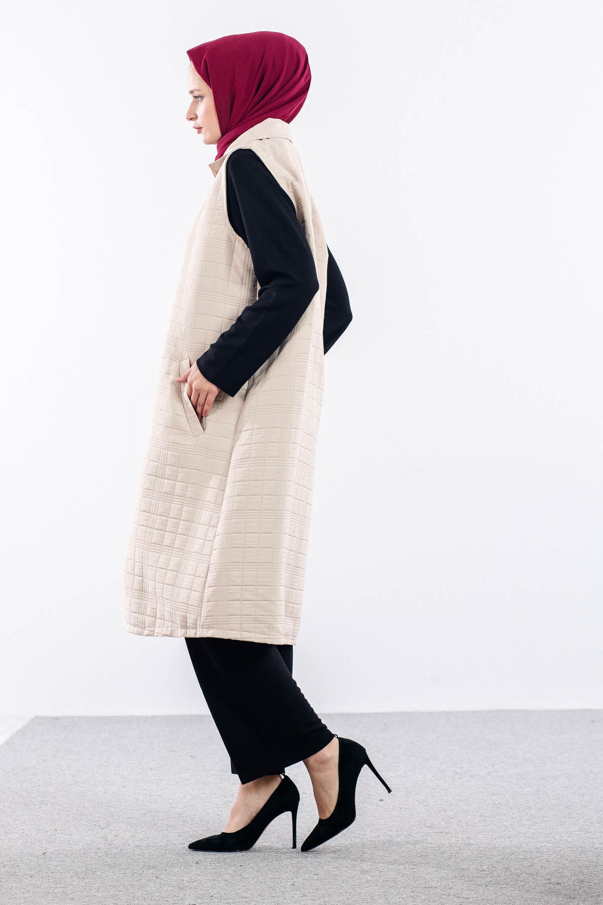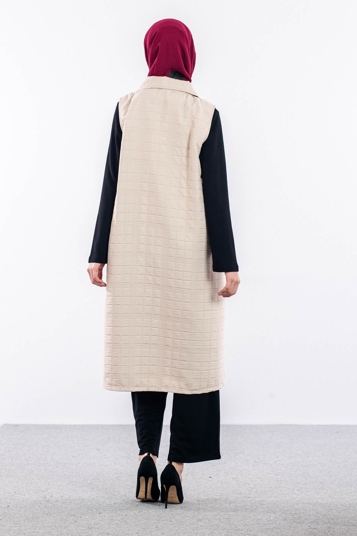 5016 Kapitone Yelek 42-48 - Bej - 3