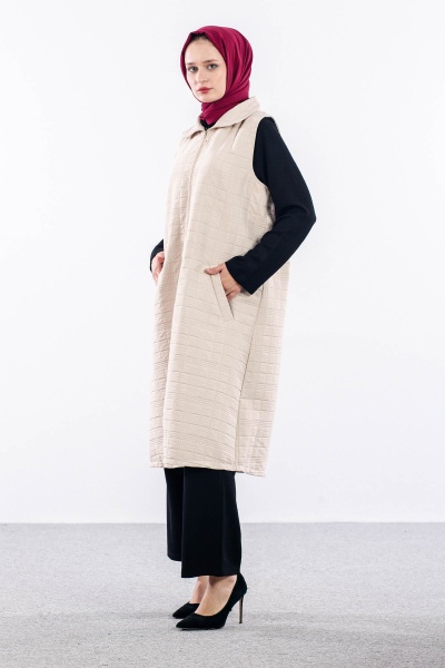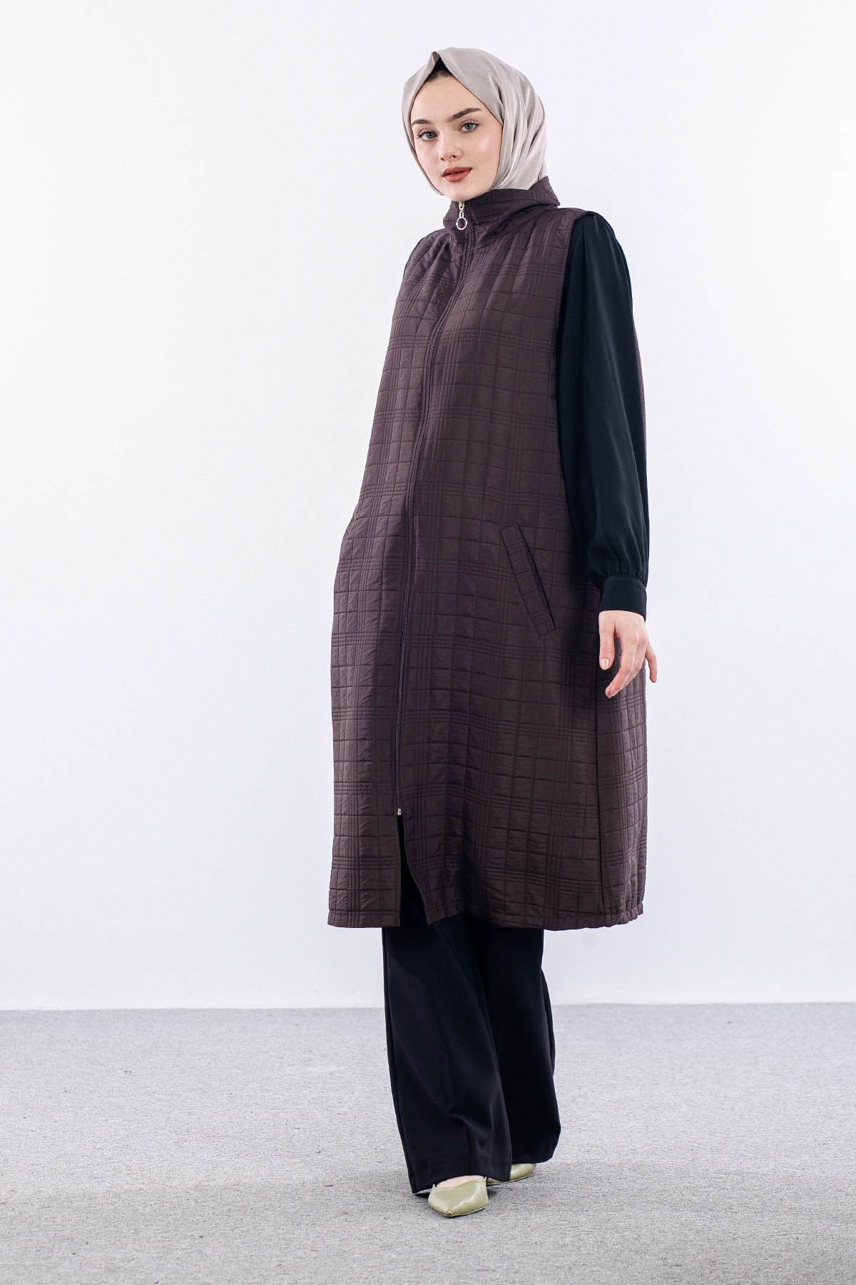 5016 Kapitone Yelek 42-48 - Kahve - 1