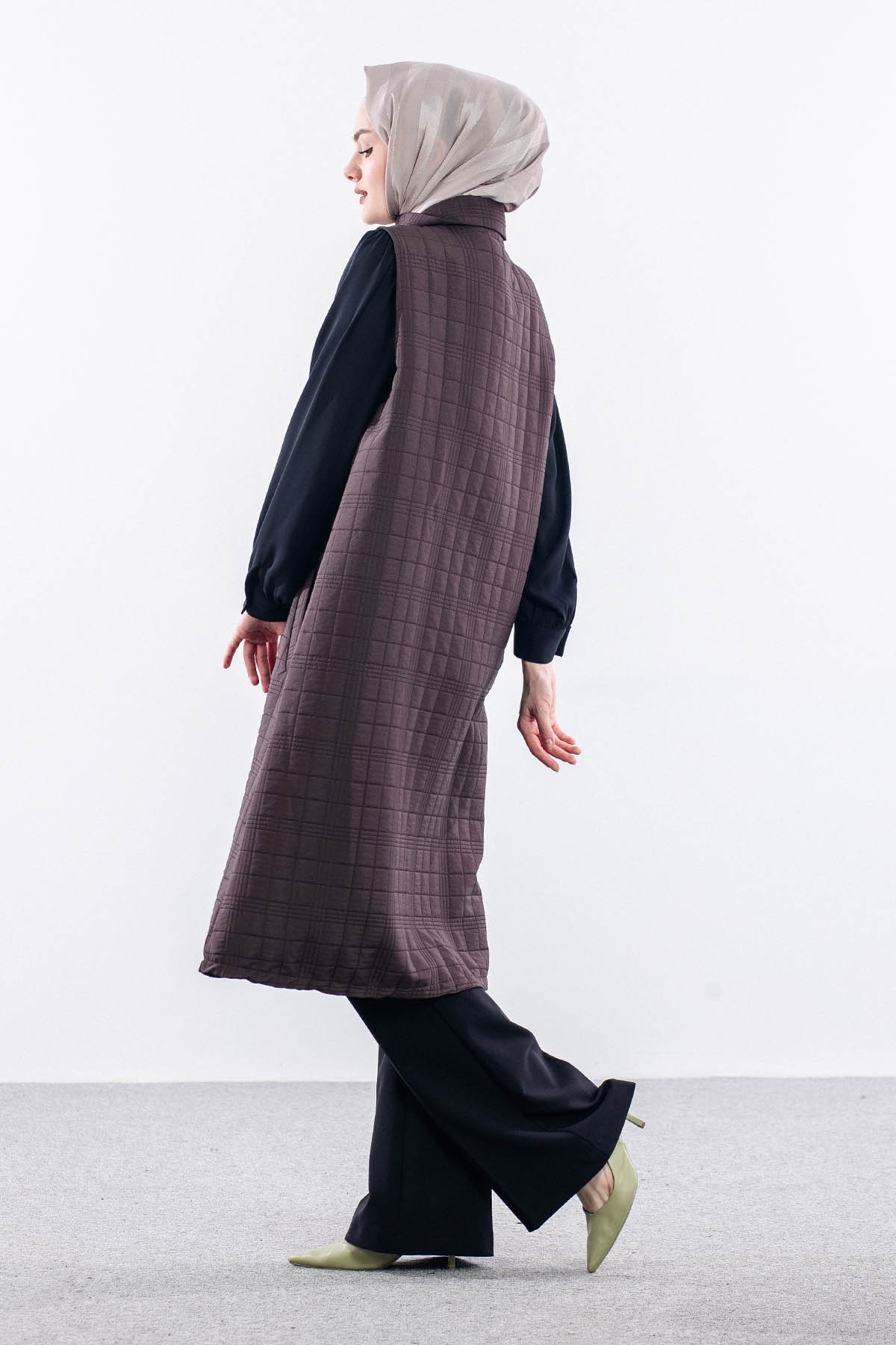 5016 Kapitone Yelek 42-48 - Kahve - 4