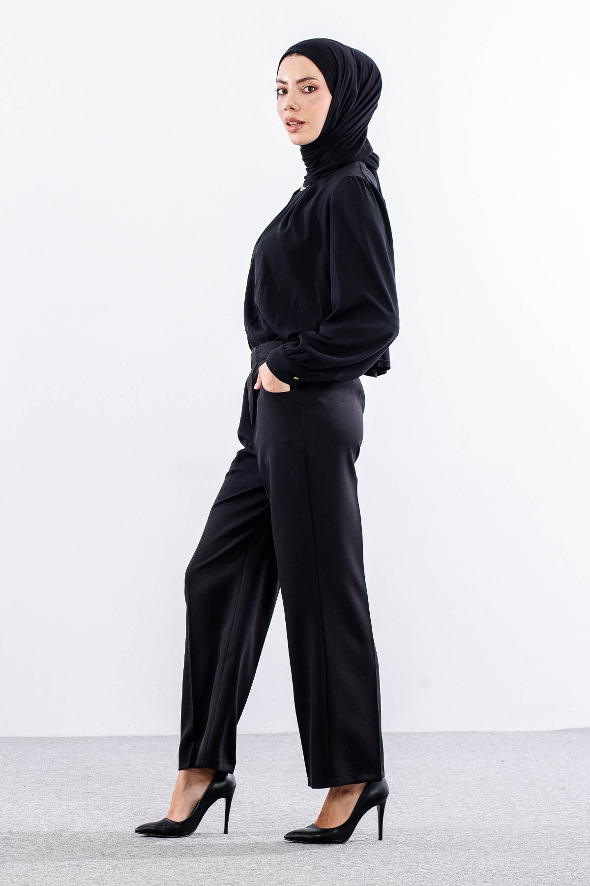 5016 Pantolon 40-50 Kumas Bol Paca - Siyah - 2