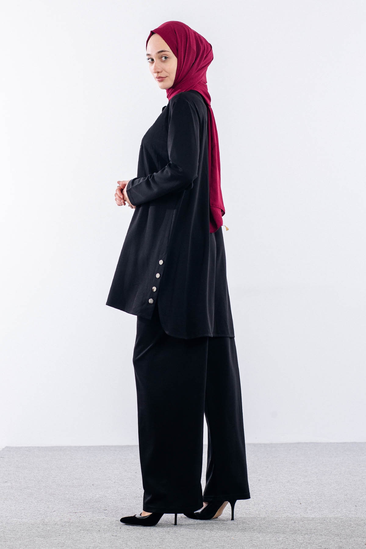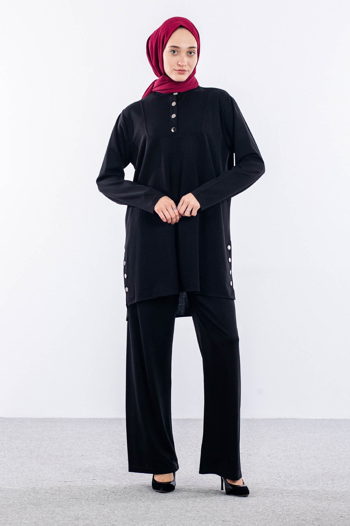 564 Takim 40-46 Dugme Detayli - Siyah - 2