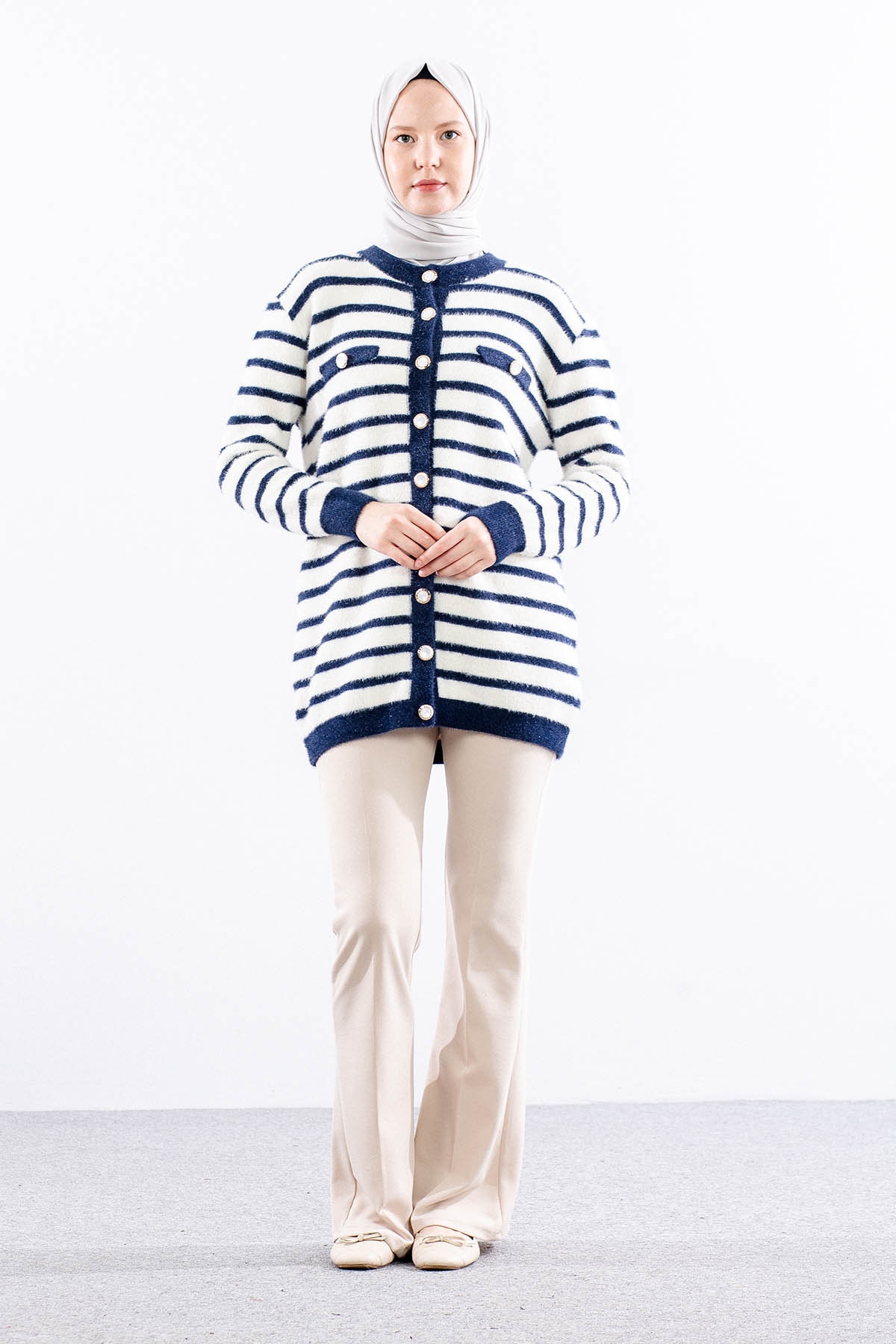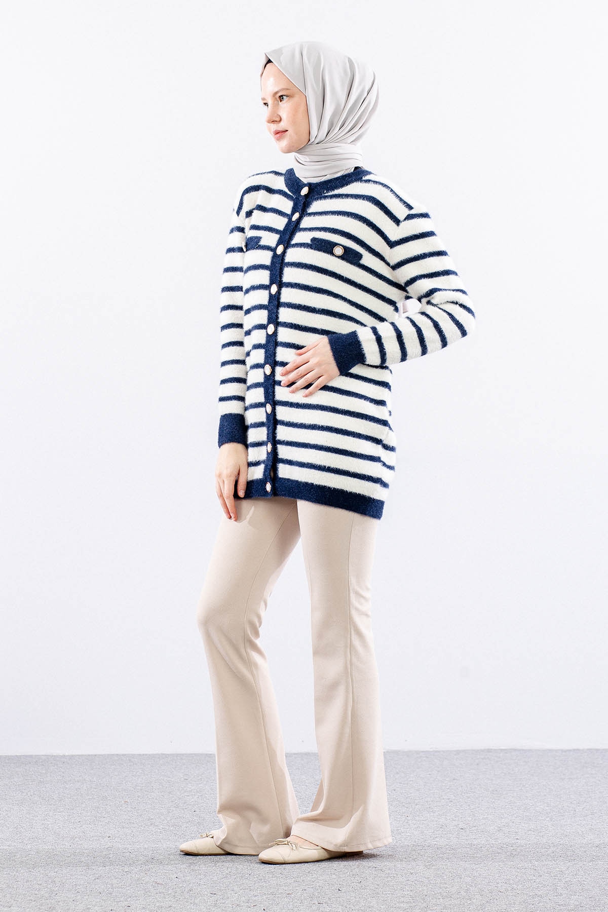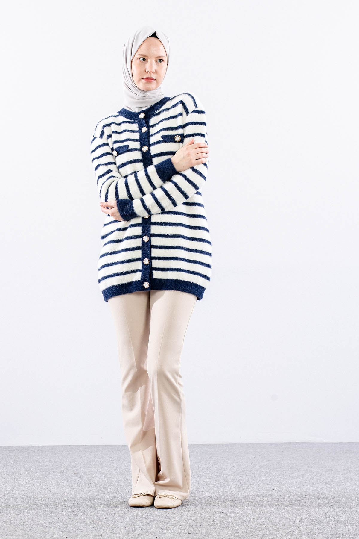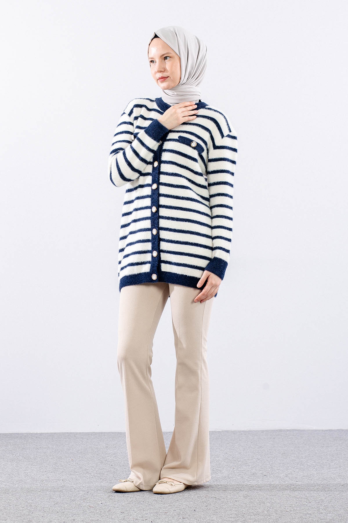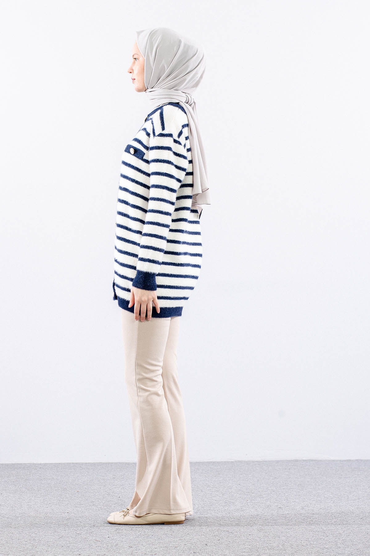 5733 Pelus Hirka Tek Cizgili - Lacivert_krem - 6