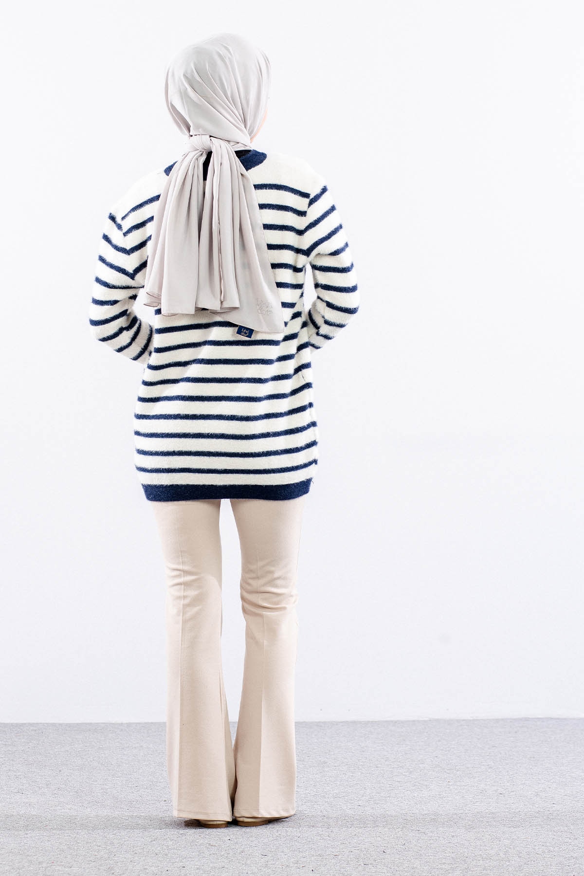 5733 Pelus Hirka Tek Cizgili - Lacivert_krem - 4