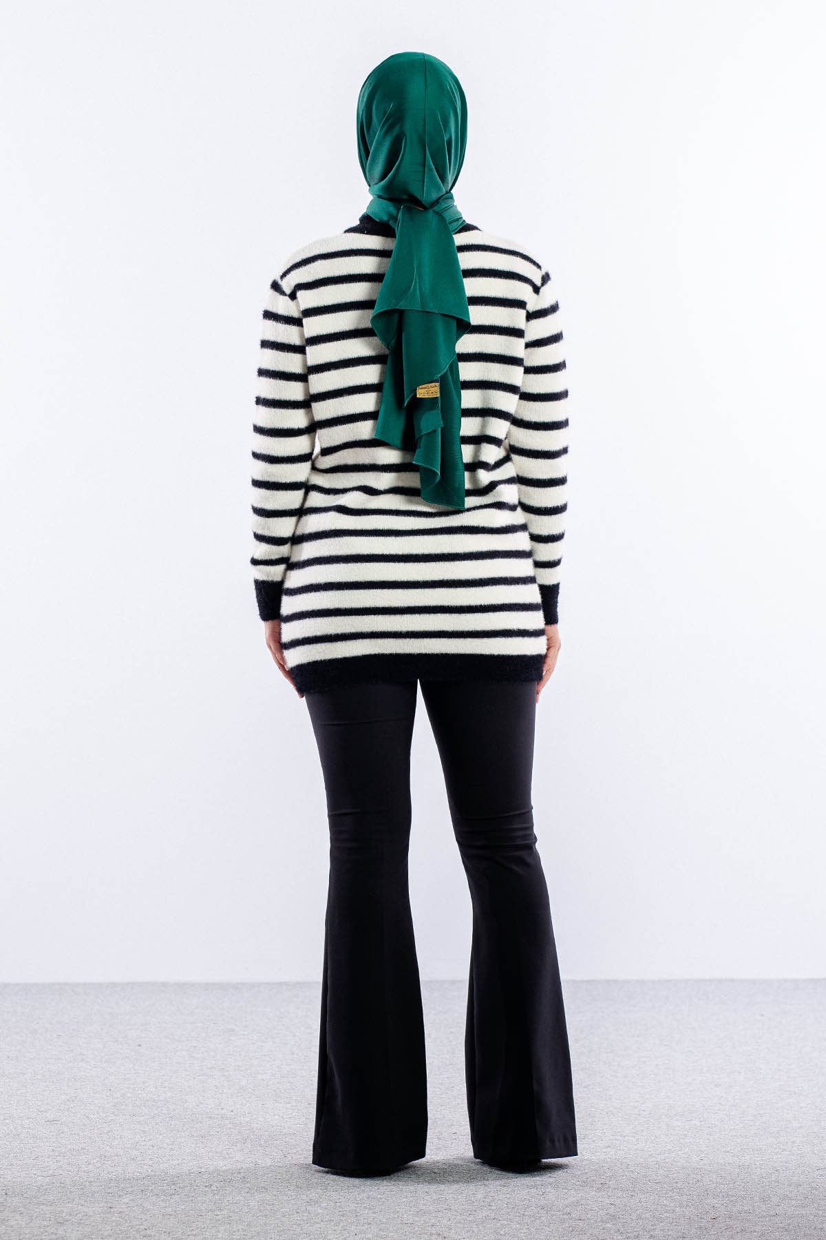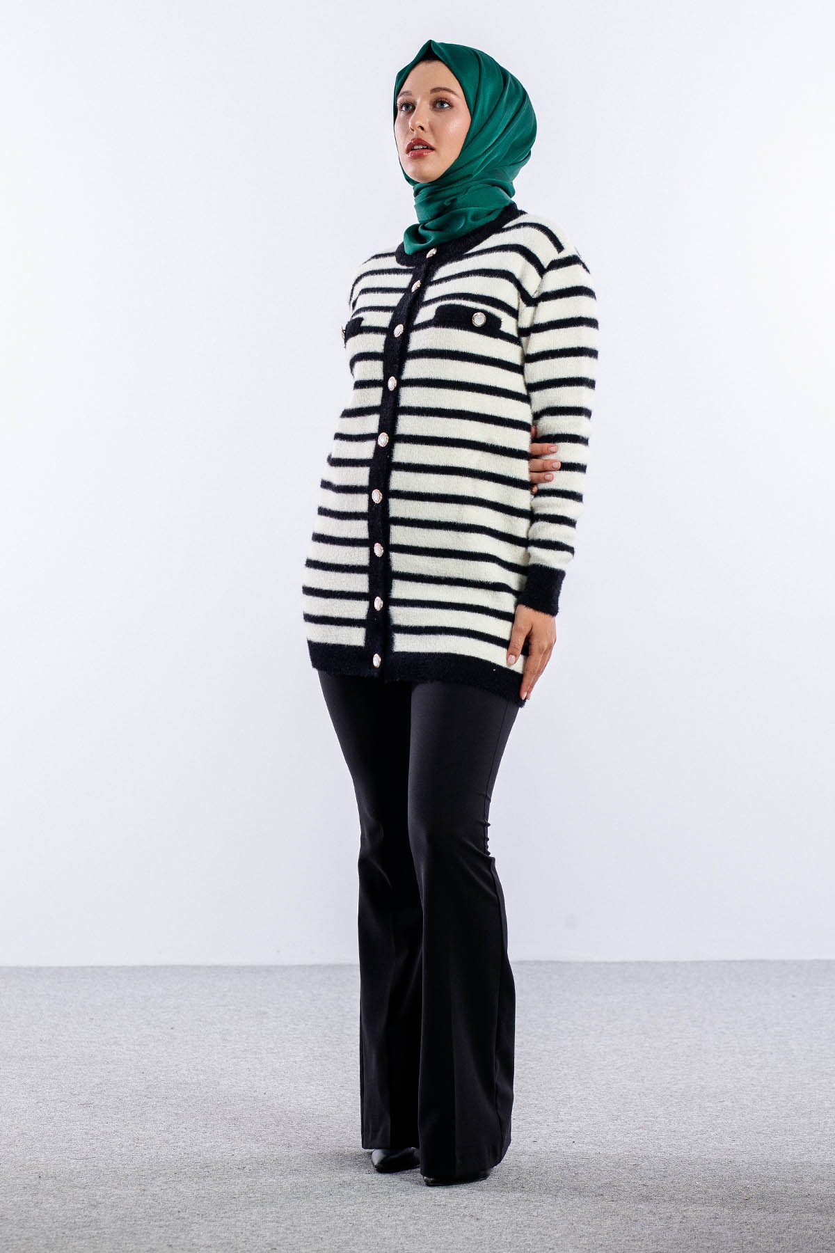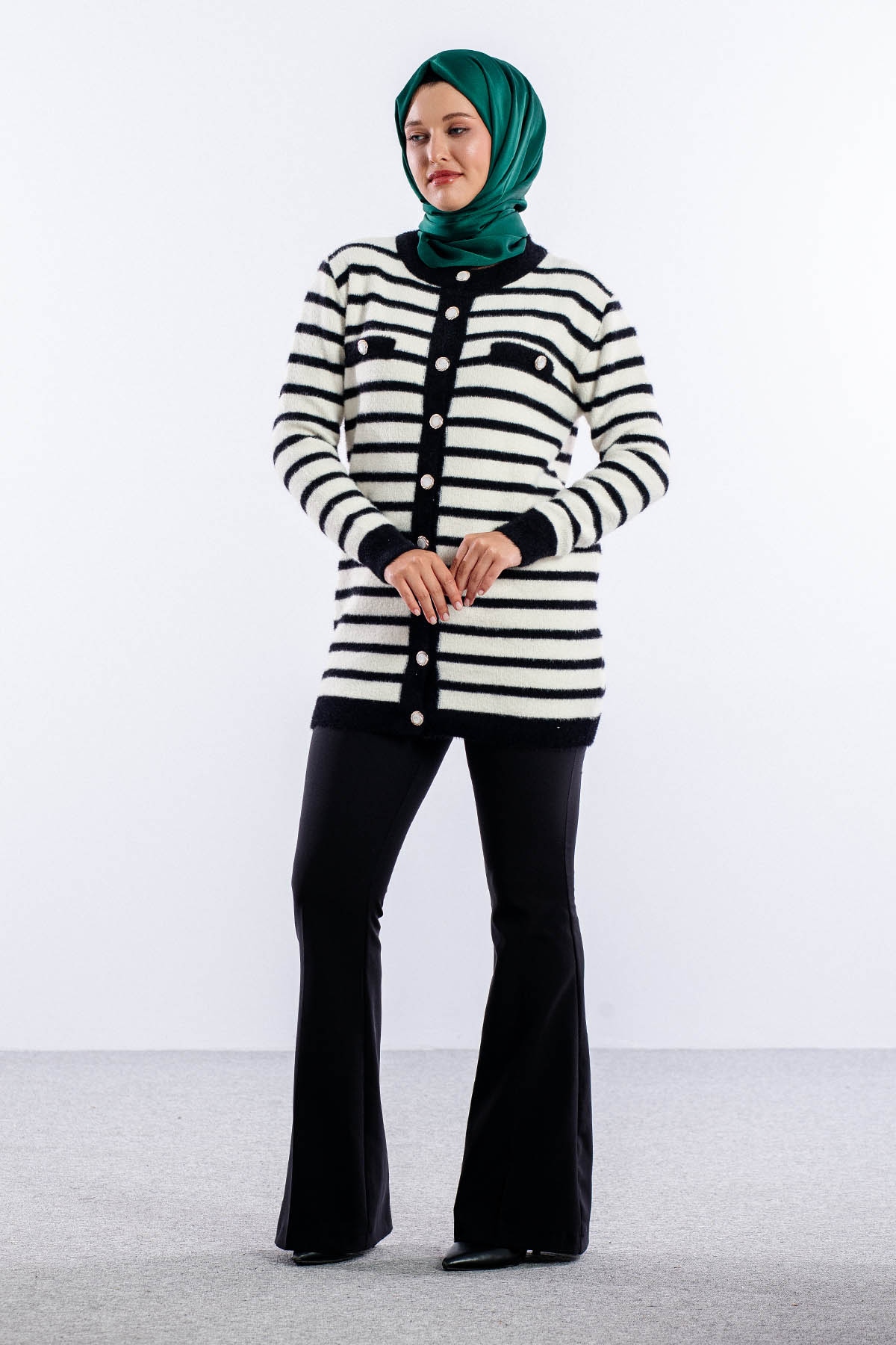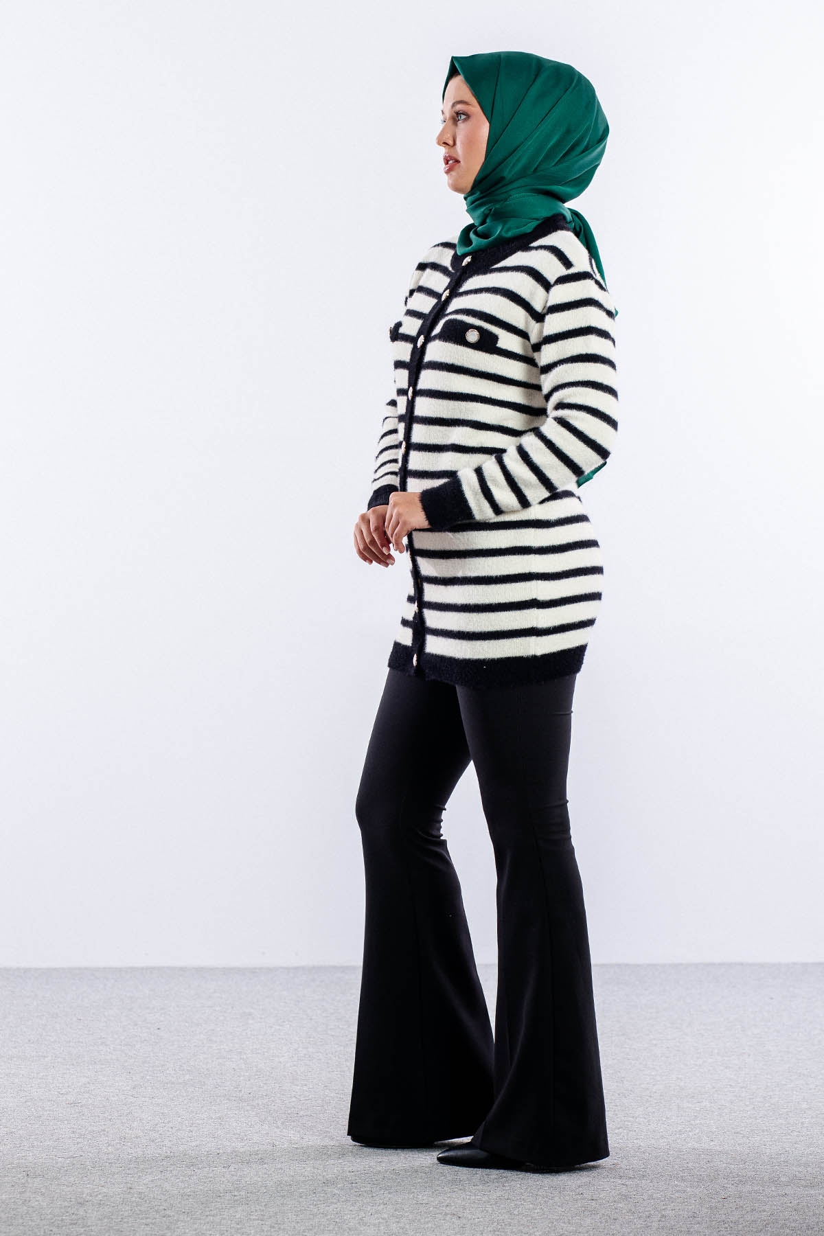 5733 Pelus Hirka Tek Cizgili - Siyah_ekru - 4