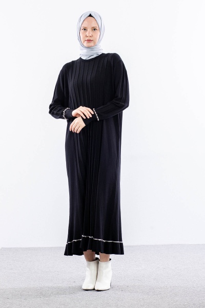 6745 Triko Elbise Tek - Bej - 2