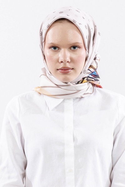 6795 İpek Eşarp 90*90 Tvil Monogram - Kahve-krem - 1