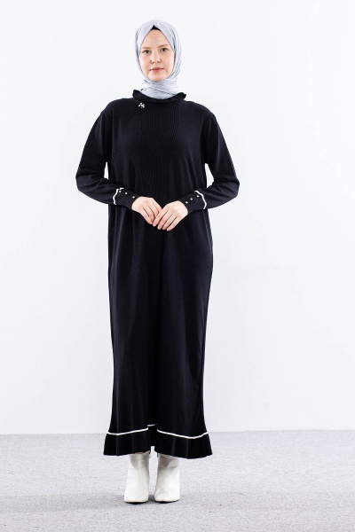 6825 Triko Elbise Tek Tasli - Bej - 1