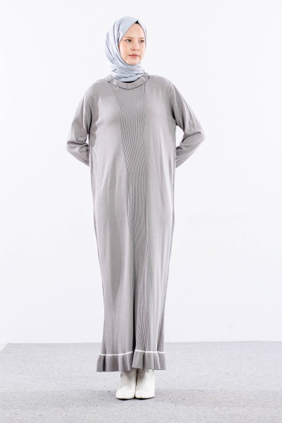 6825 Triko Elbise Tek Tasli - Indigo - 2