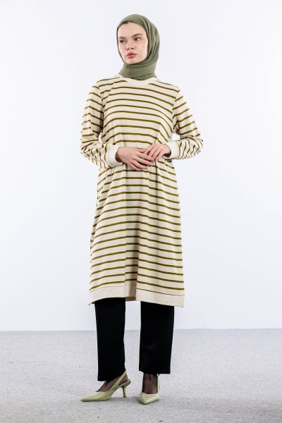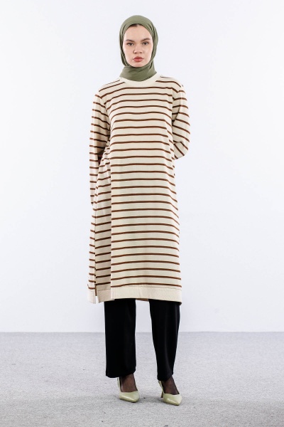 8043 Tunik 42-50 Cizgili Desen - Bej_murdum - 1