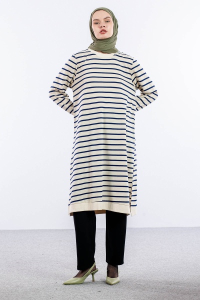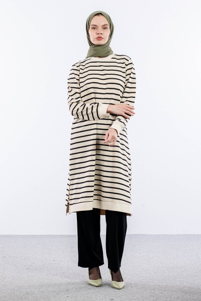 8043 Tunik 42-50 Cizgili Desen - Bej_murdum - 4