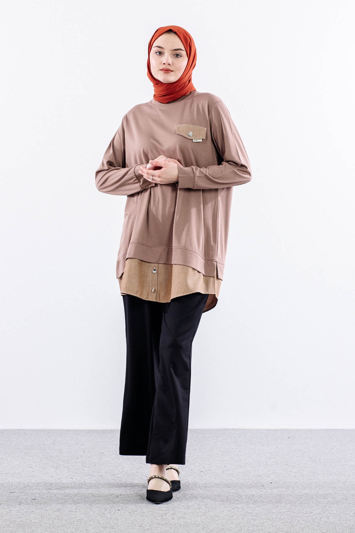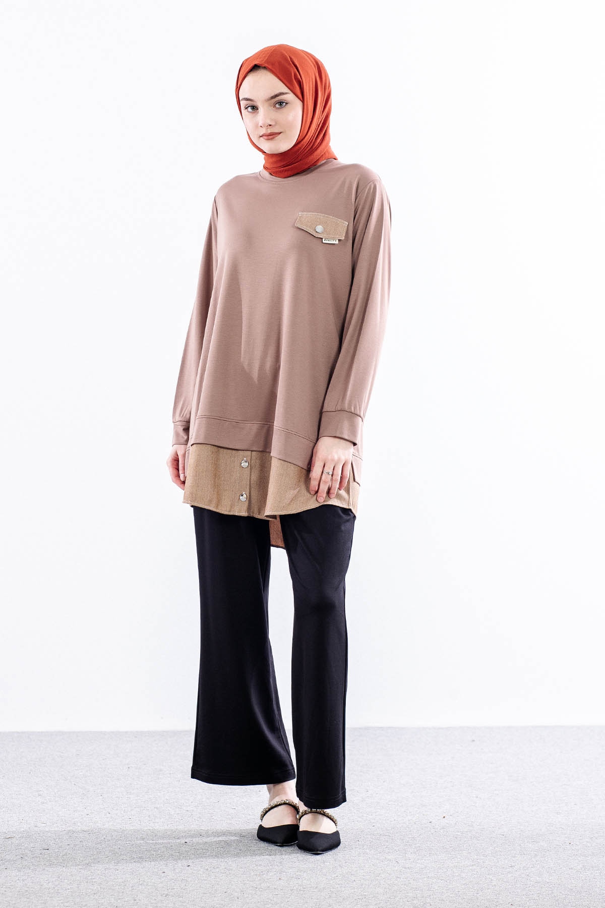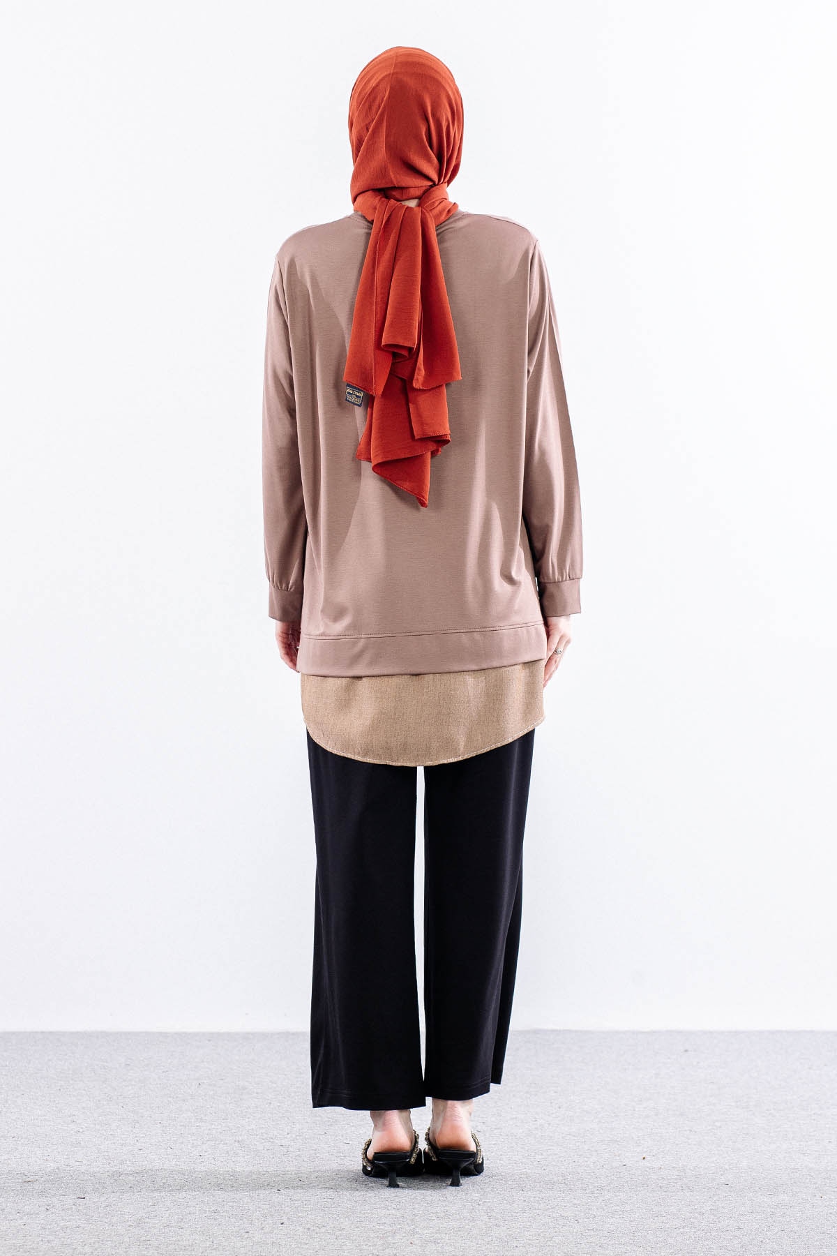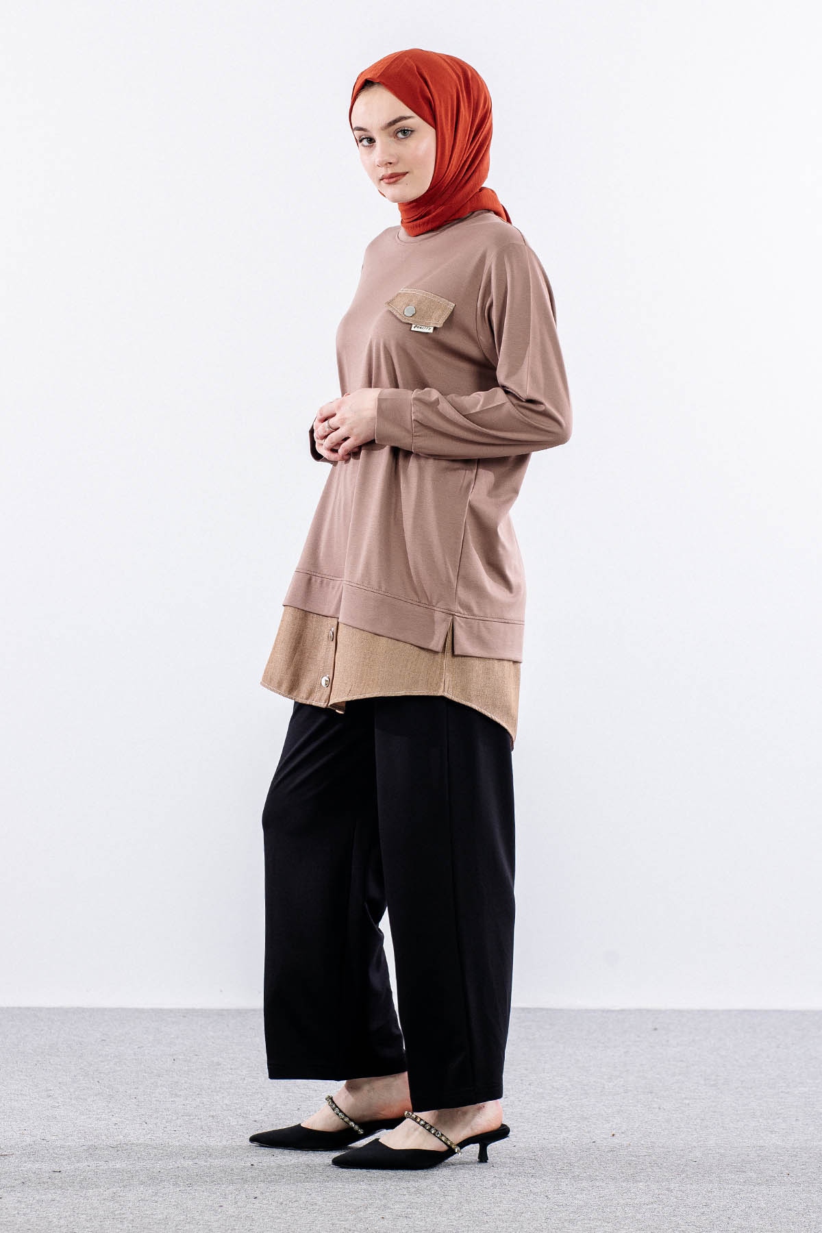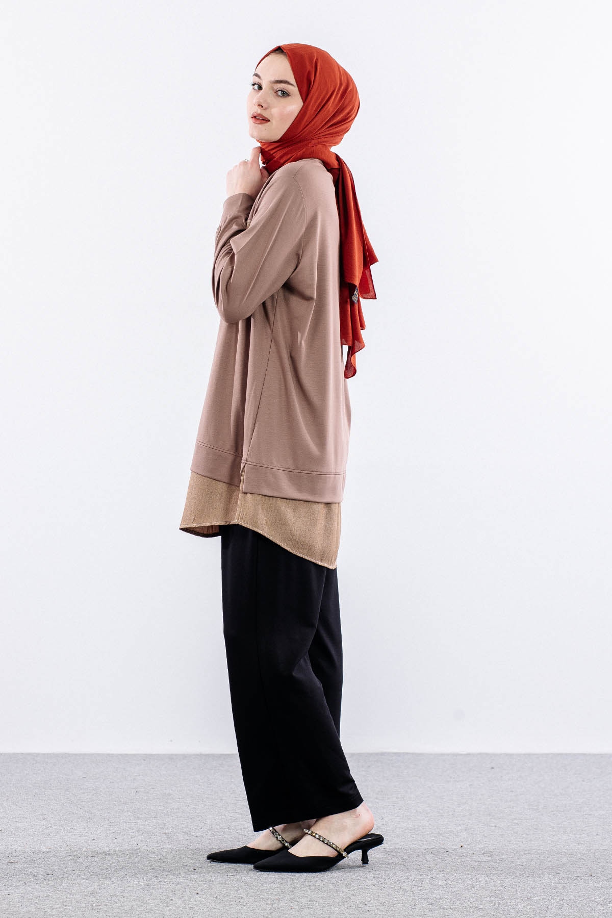 844-58 Tunik 40- Etekucu Kot Garni - Vizon