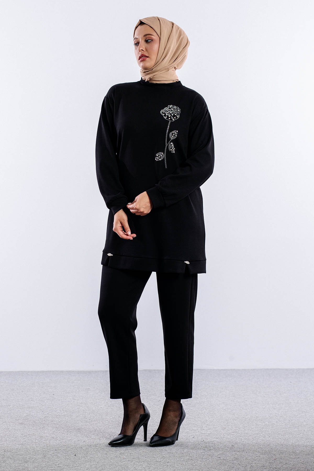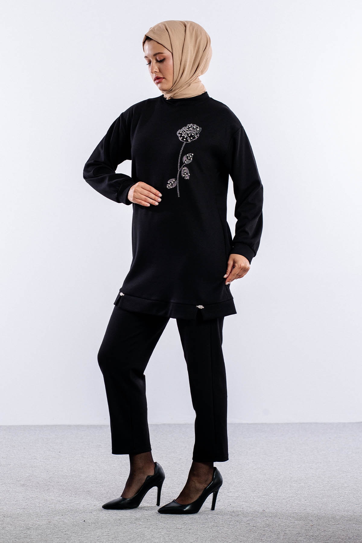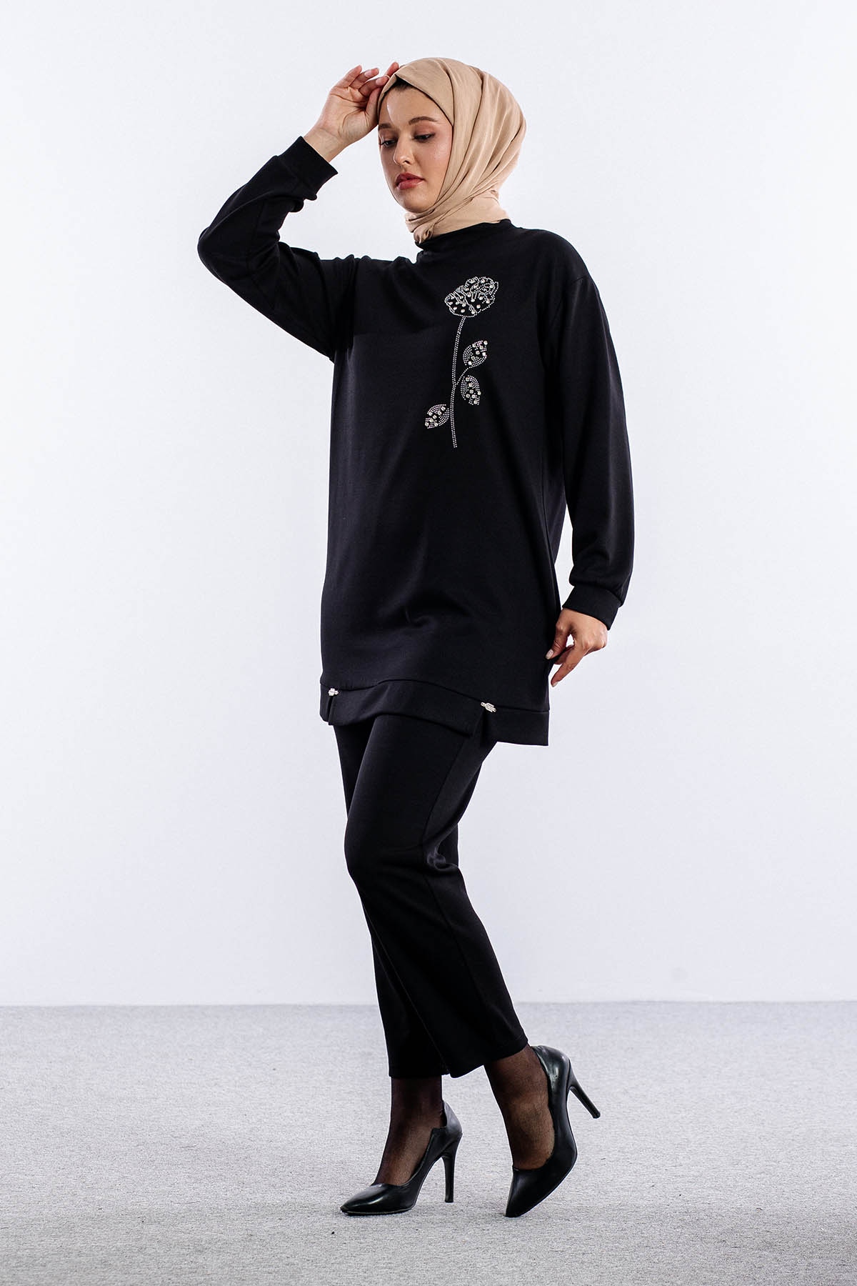 8660 Takim 38-46 Omuzda Gul Desen Tas - Siyah