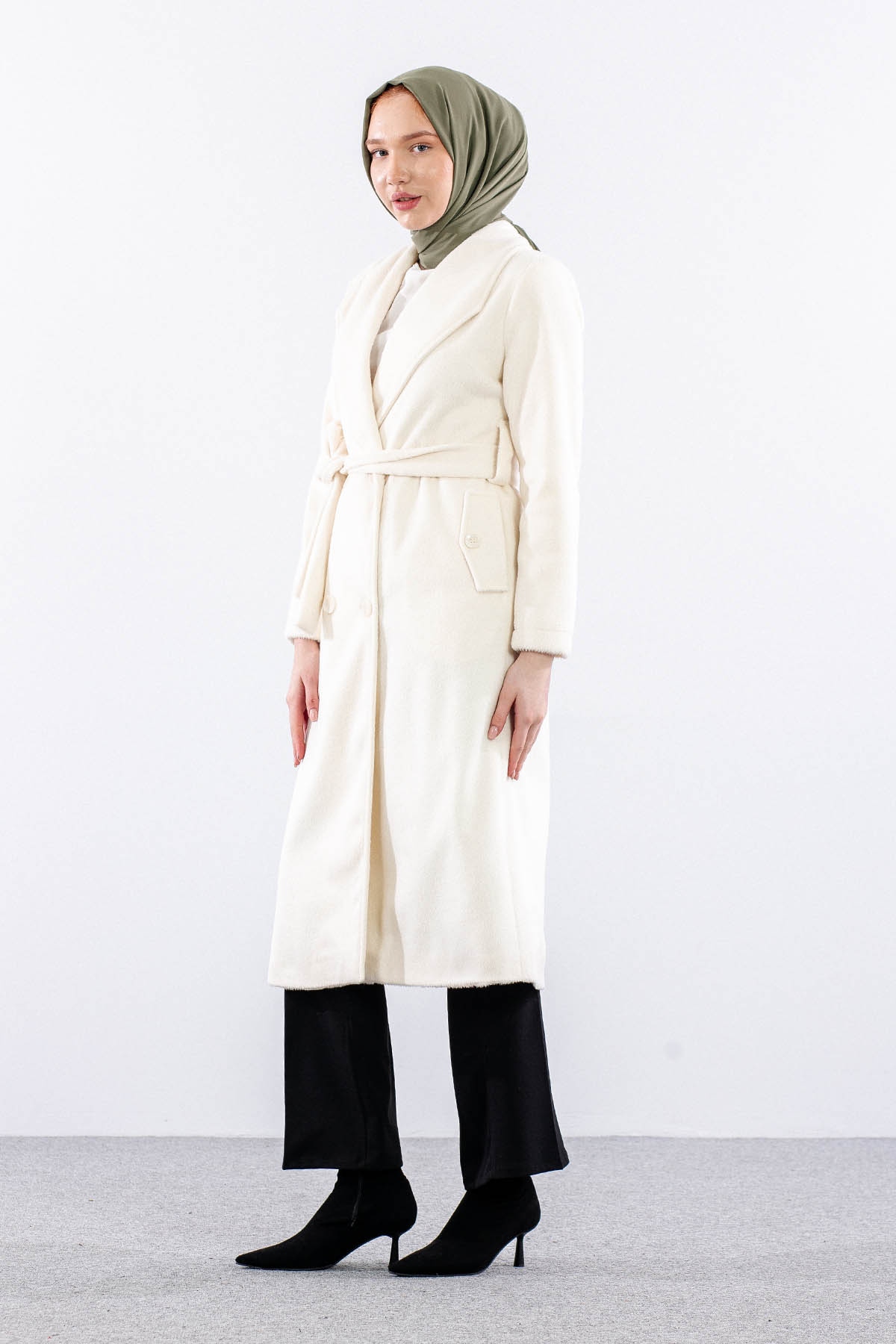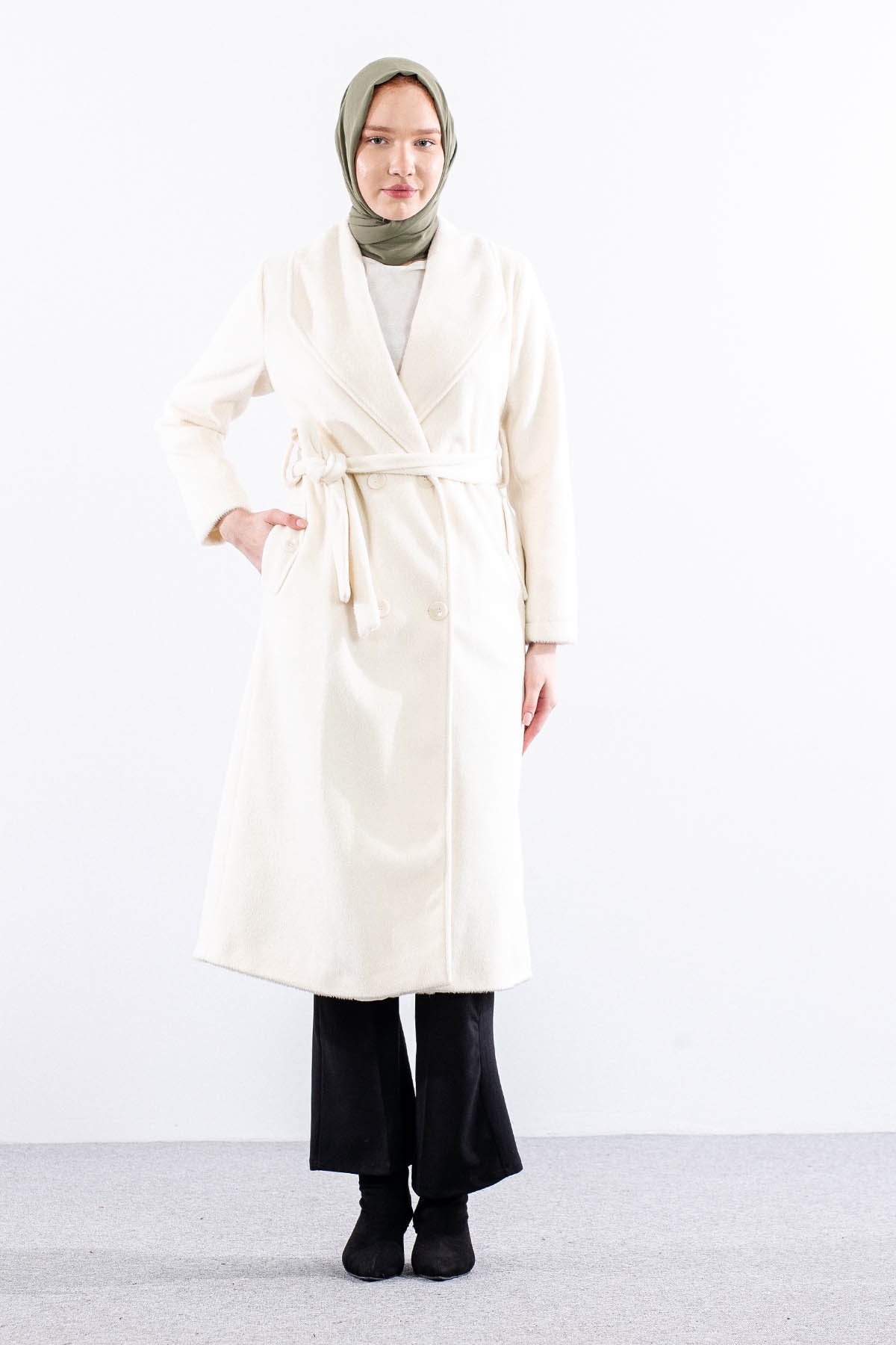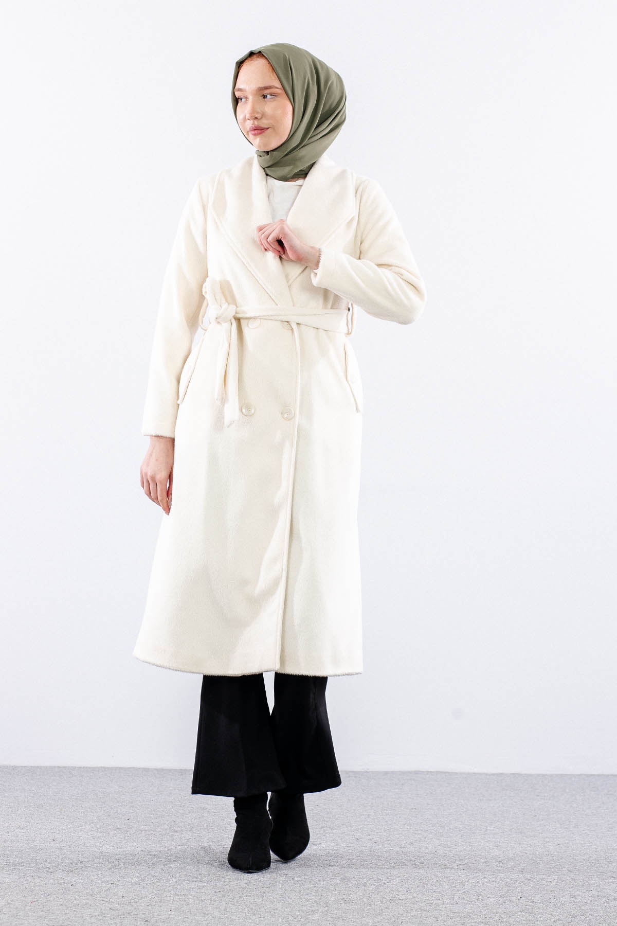 9144 Kaşe Kaban 38-48 - Ekru - 3
