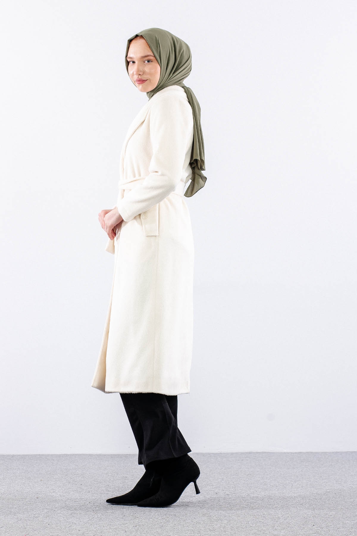 9144 Kaşe Kaban 38-48 - Ekru - 5