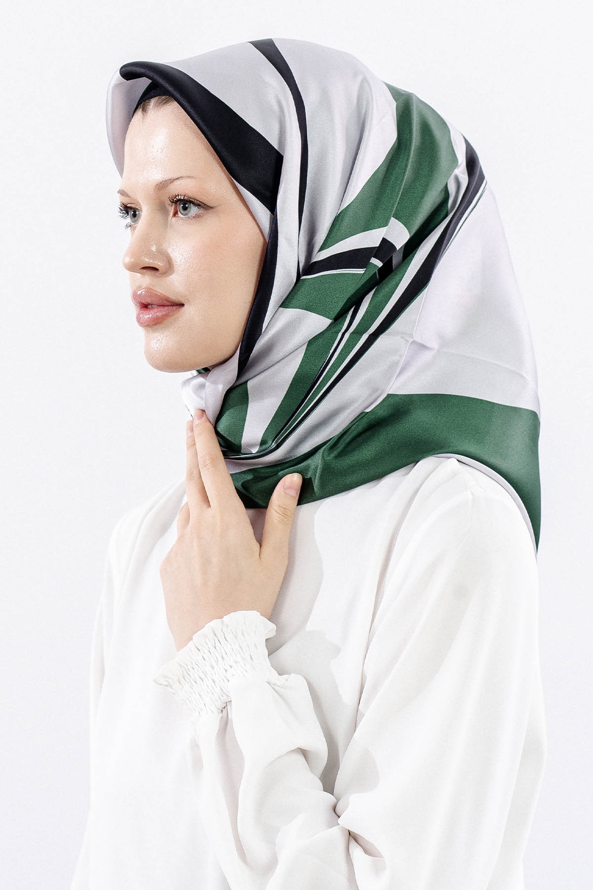 Dg12508 İpek Eşarp 90*90 Sura Dokuma - Gumus - 3