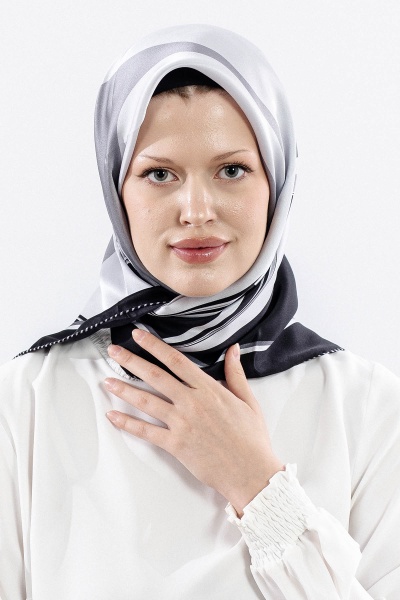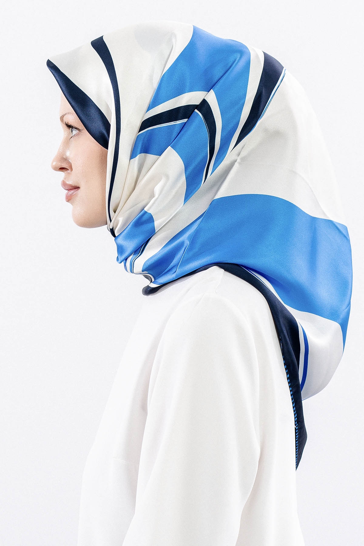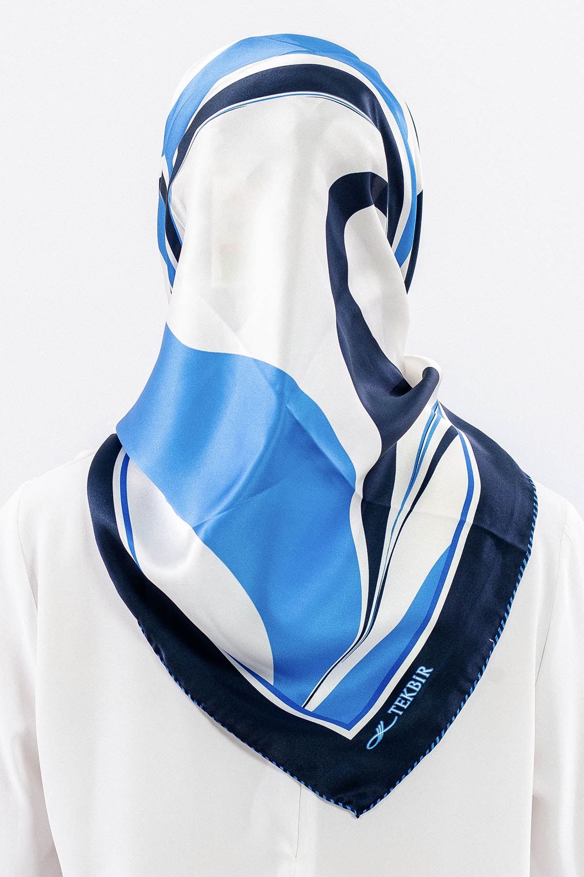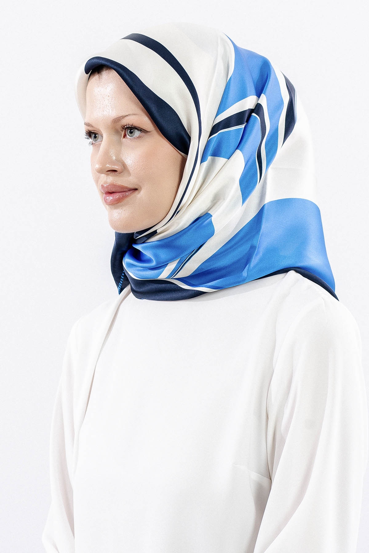 Dg12508 İpek Eşarp 90*90 Sura Dokuma - Lacivert_krem - 1