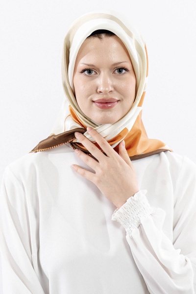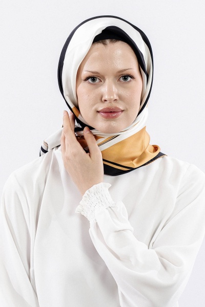 Dg12508 İpek Eşarp 90*90 Sura Dokuma - Lacivert_krem - 8