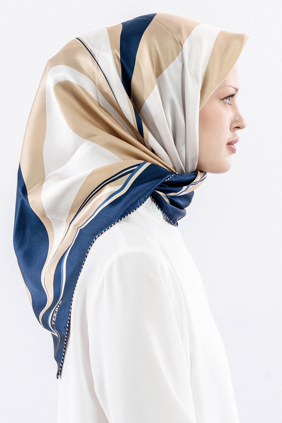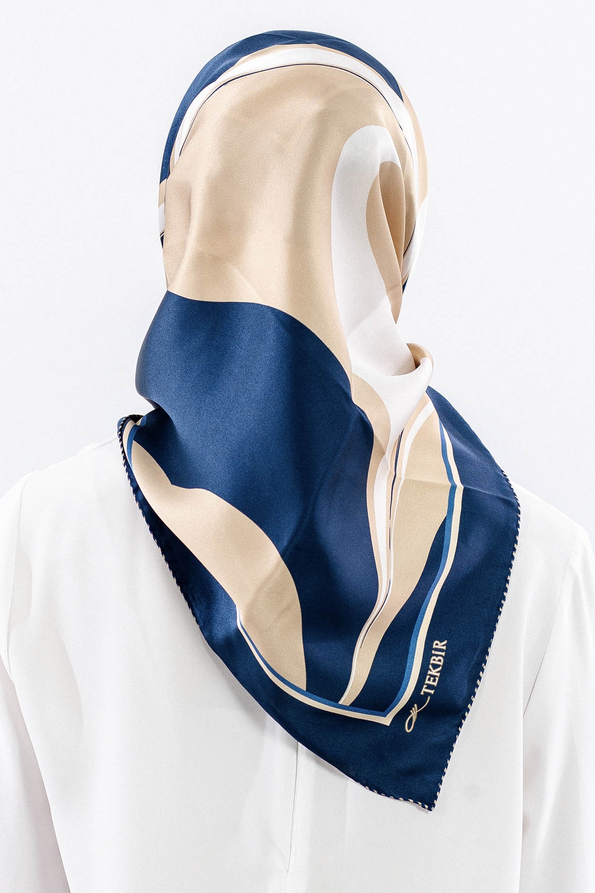 Dg12508 İpek Eşarp 90*90 Sura Dokuma - Lacivert_tas - 1