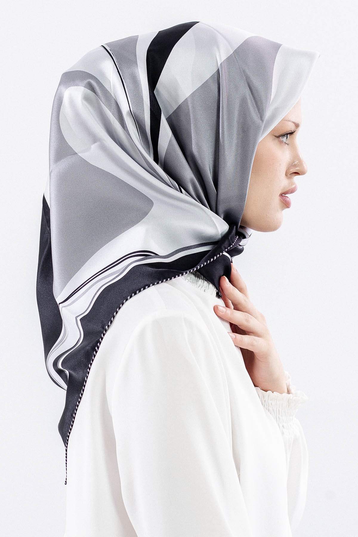 Dg12508 İpek Eşarp 90*90 Sura Dokuma - Siyah_gri - 4