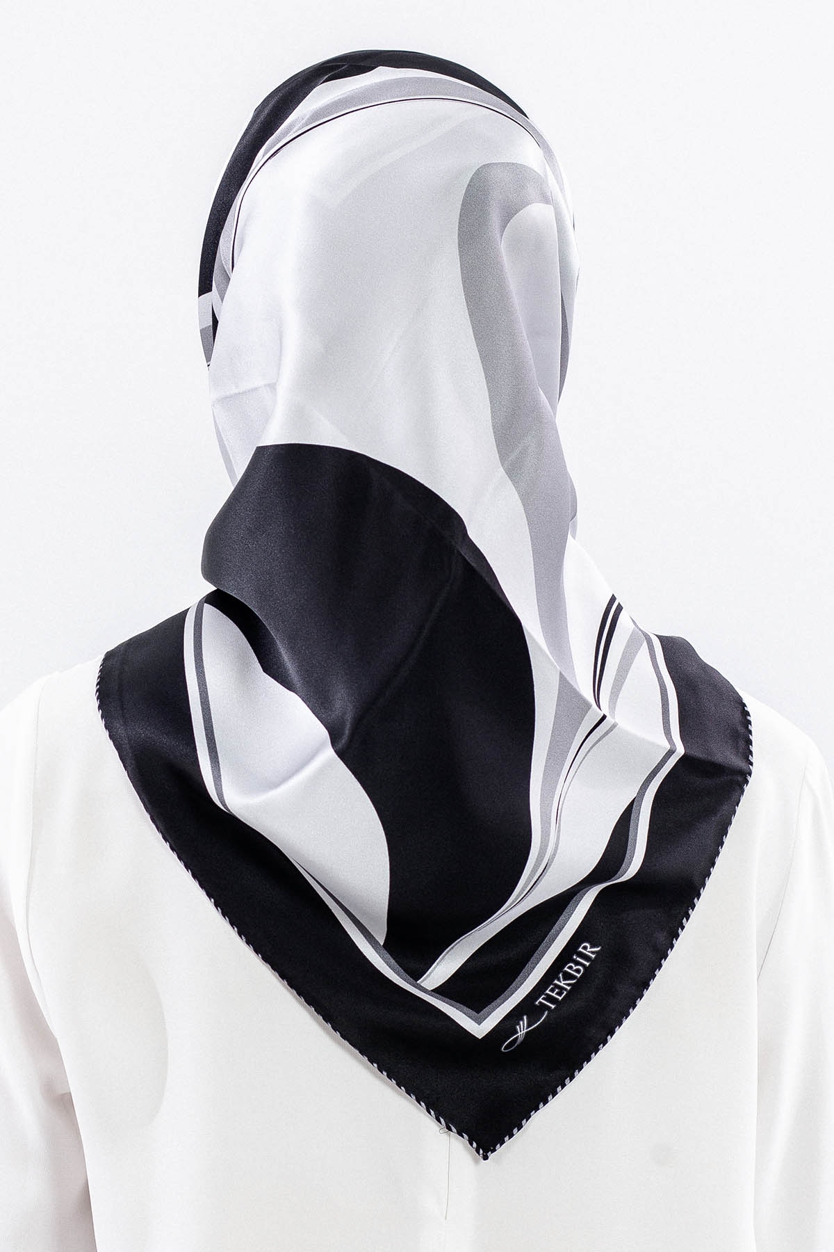 Dg12508 İpek Eşarp 90*90 Sura Dokuma - Siyah_gri - 2