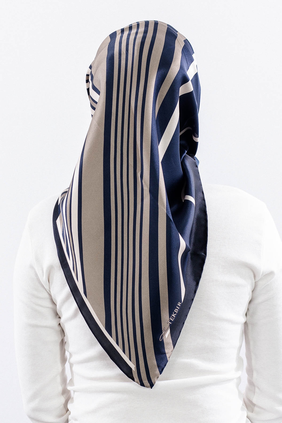 Dg13139 İpek Eşarp Cizgi Tvil Kumas - Lacivert_tas - 1