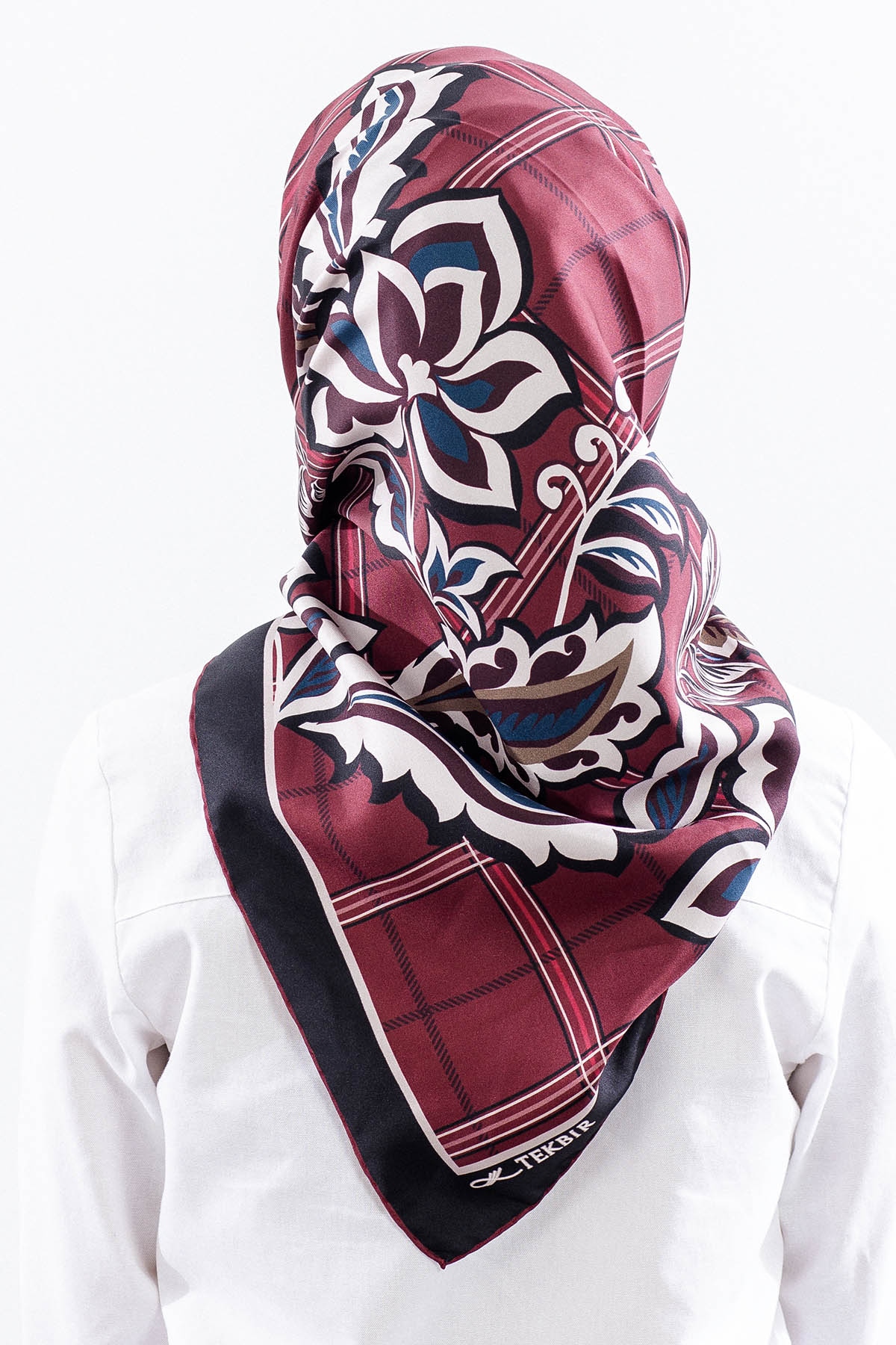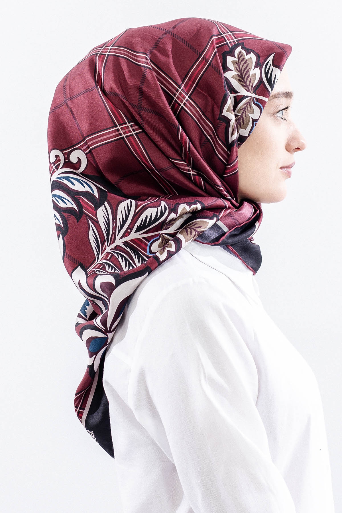 Dg14815 İpek Eşarp Kare Yaprak Tvil Kumas - Bordo - 1