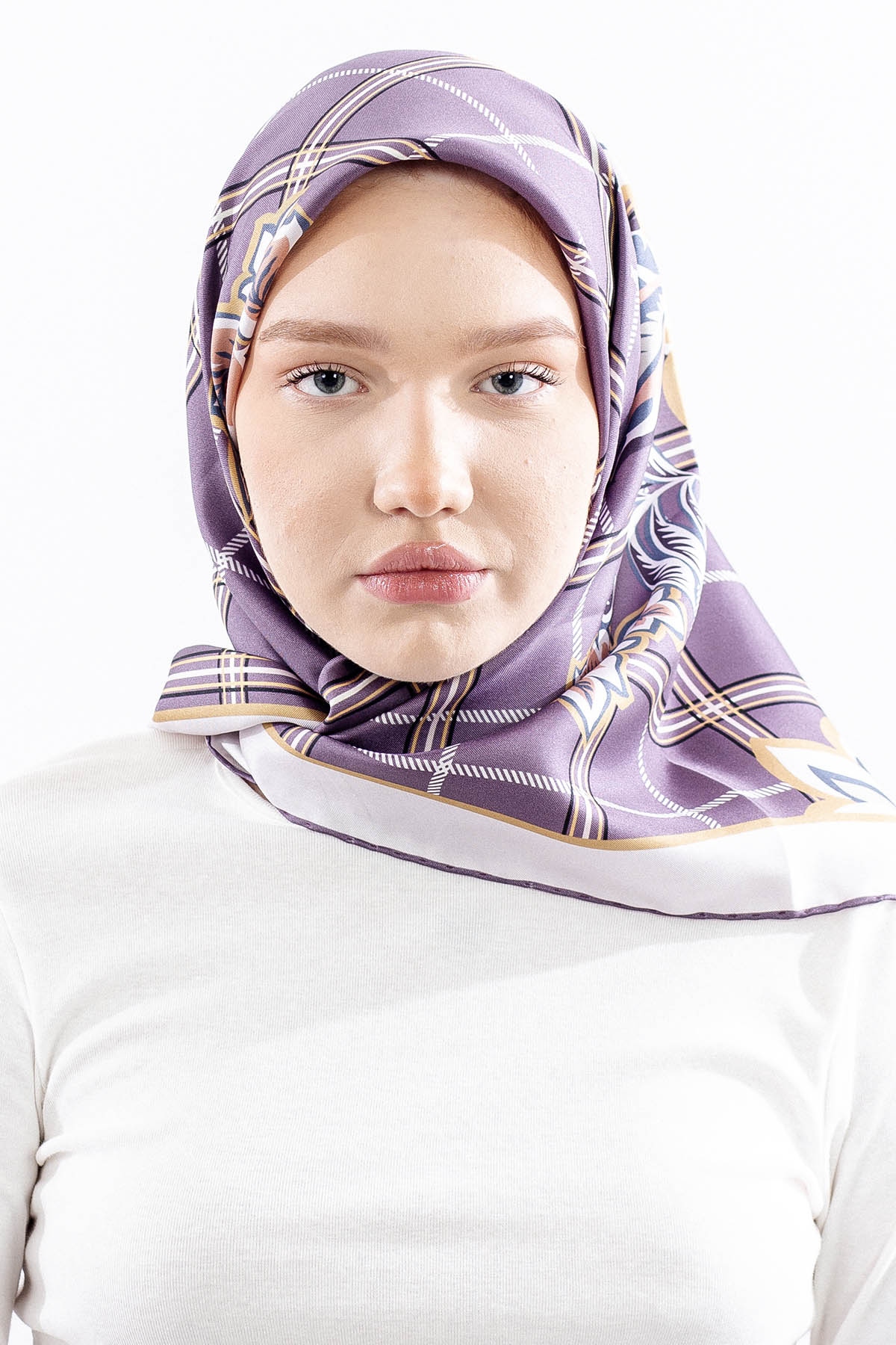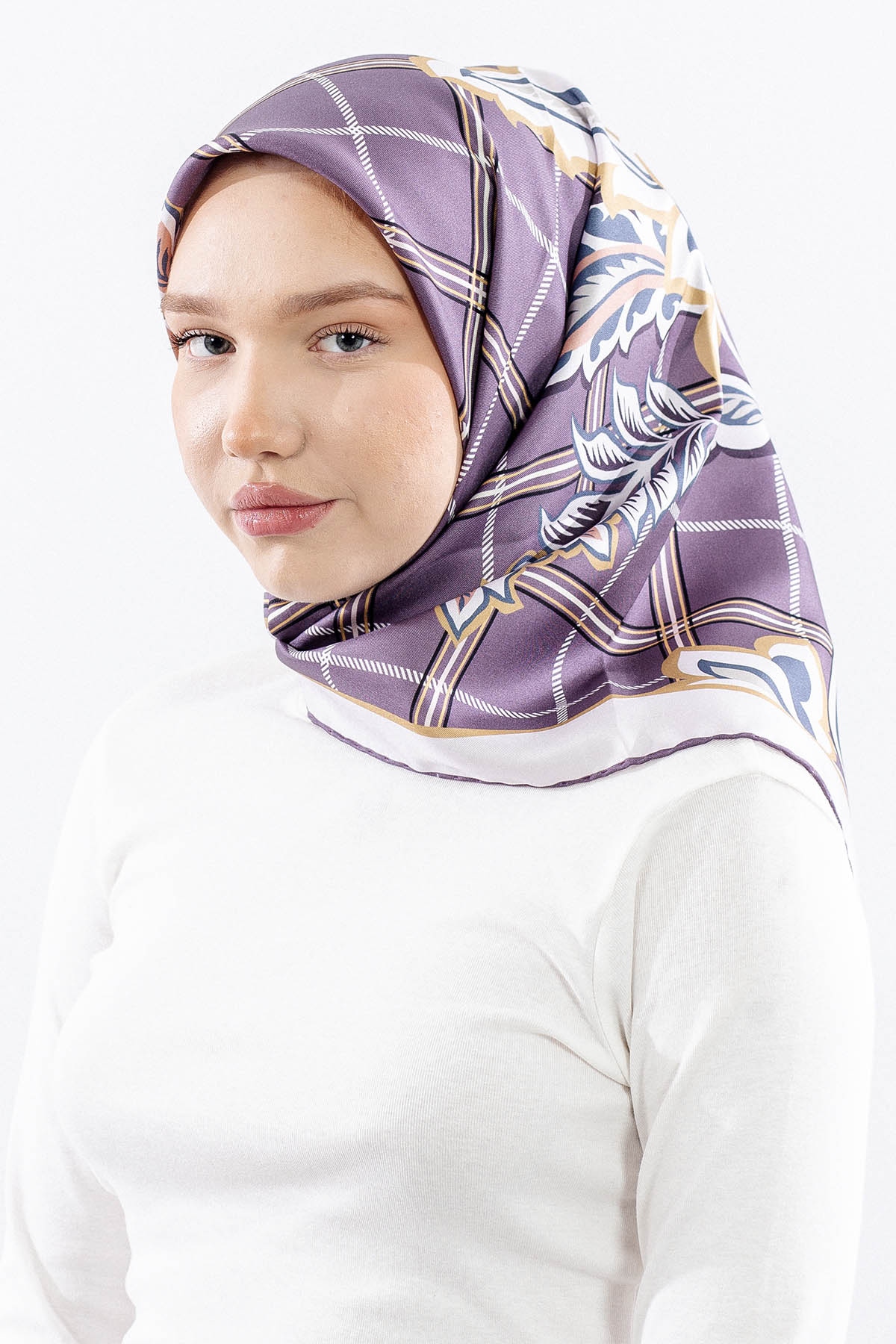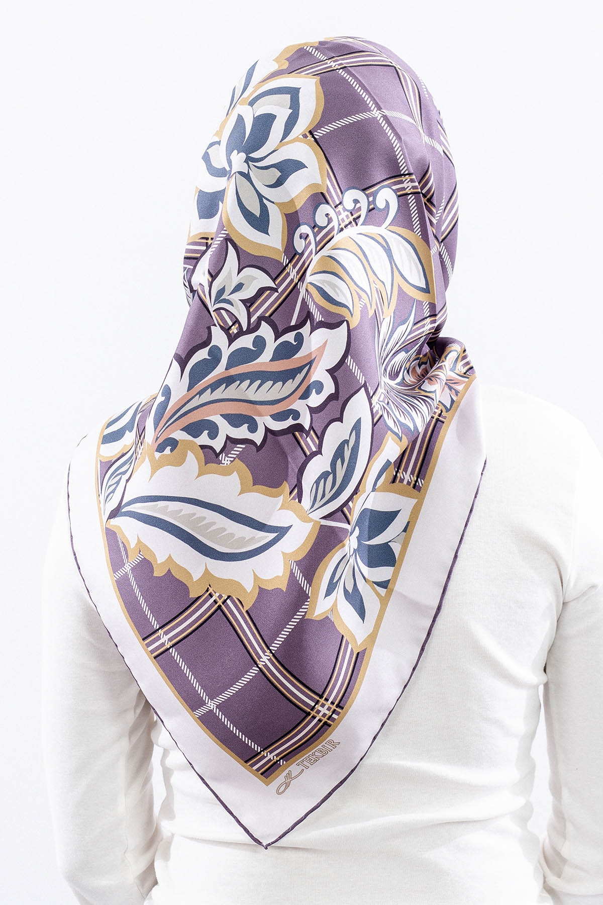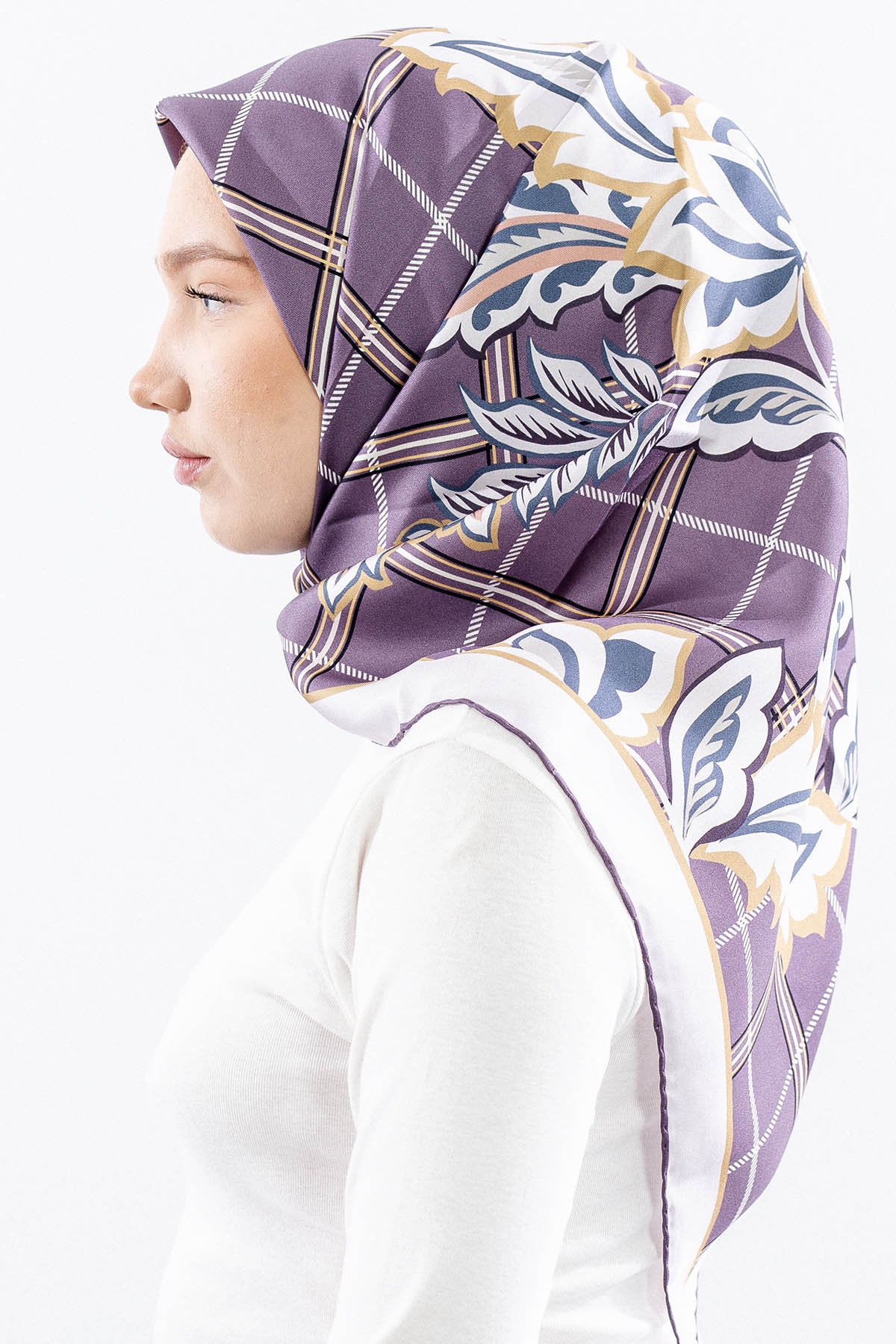 Dg14815 İpek Eşarp Kare Yaprak Tvil Kumas - Lila - 1