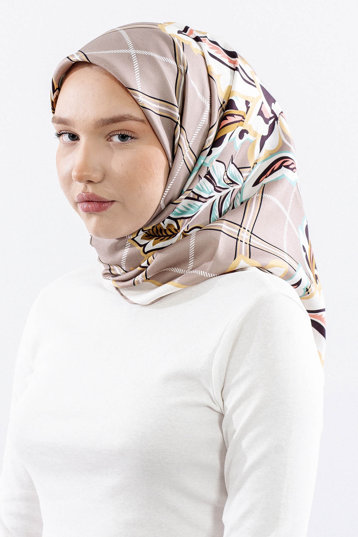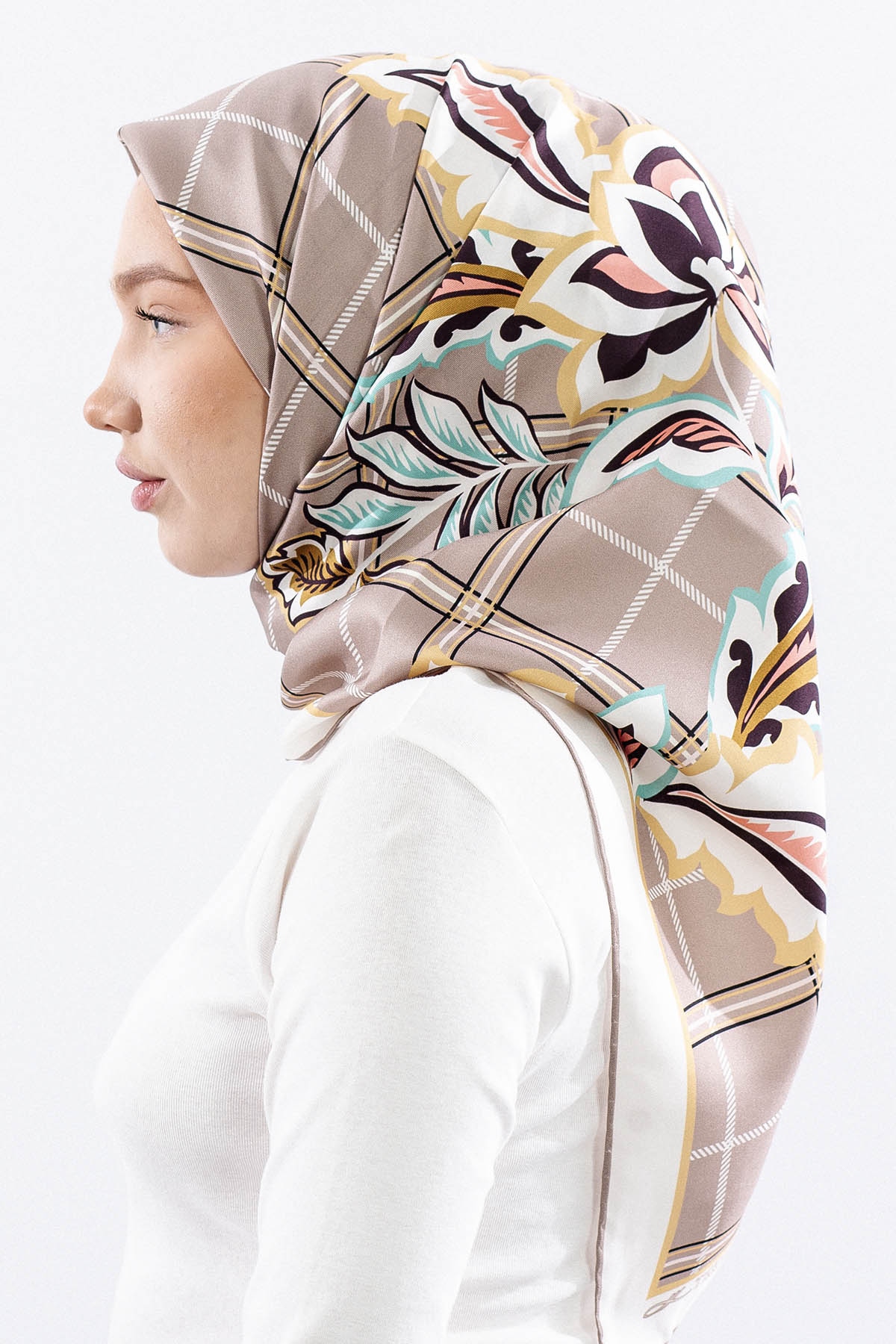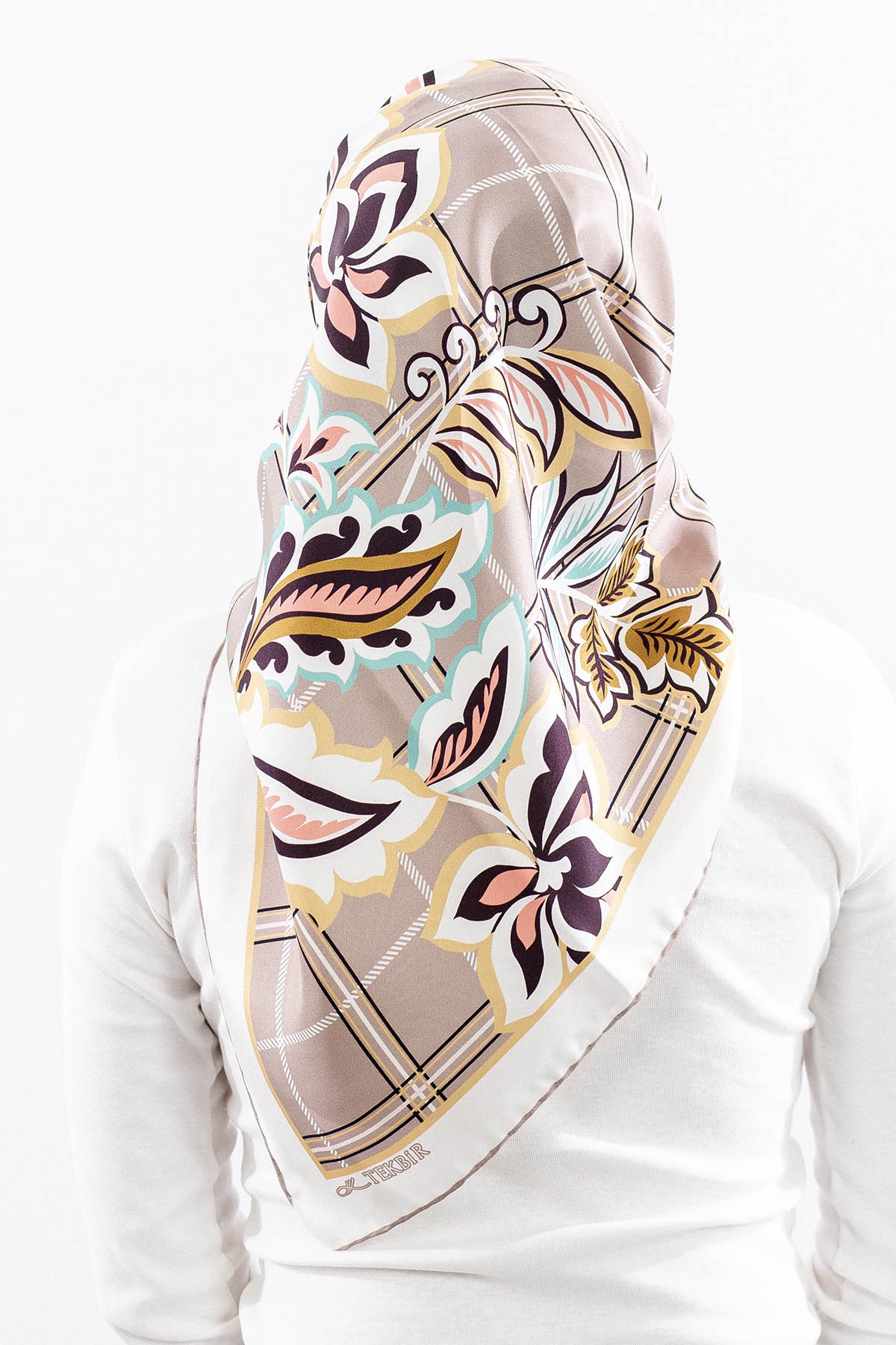 Dg14815 İpek Eşarp Kare Yaprak Tvil Kumas - S_kahve - 1