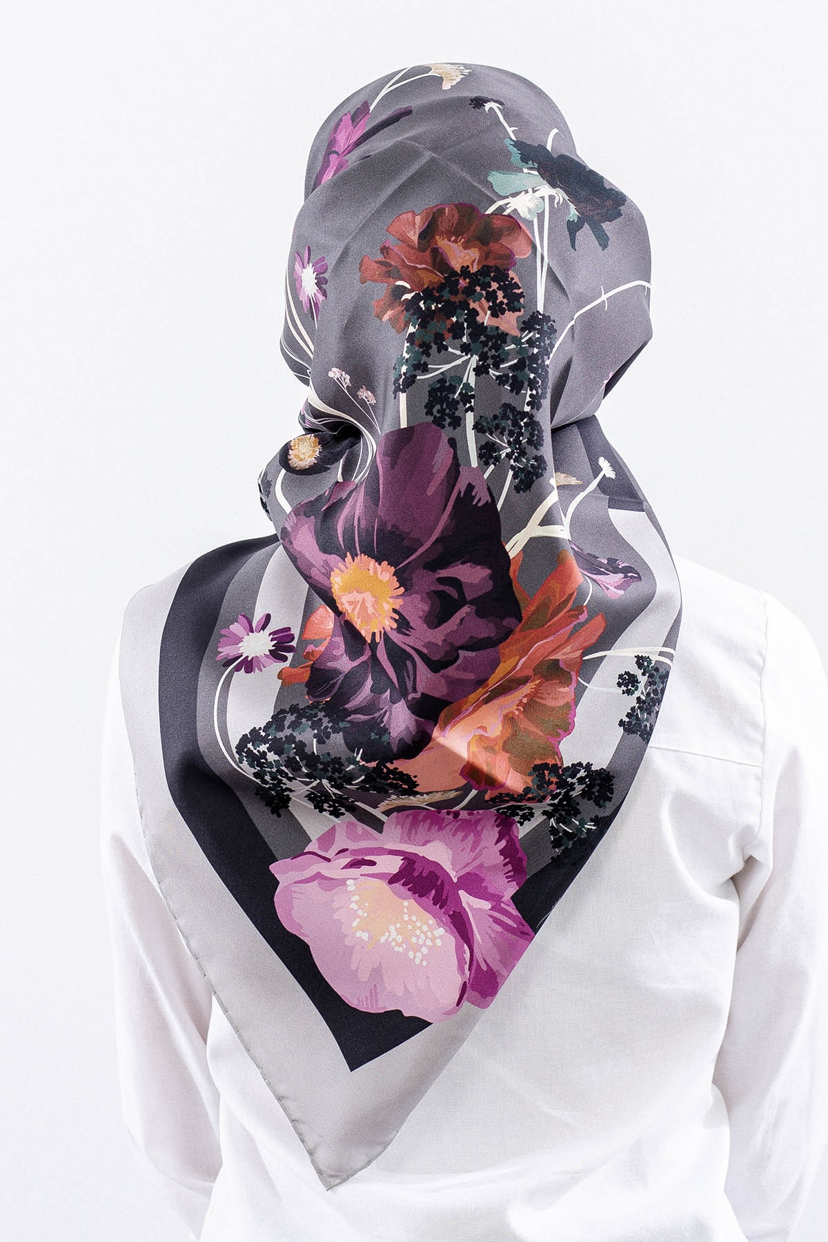 Dg14821 İpek Eşarp Nilufer Tvil Kumas - Gri - 3