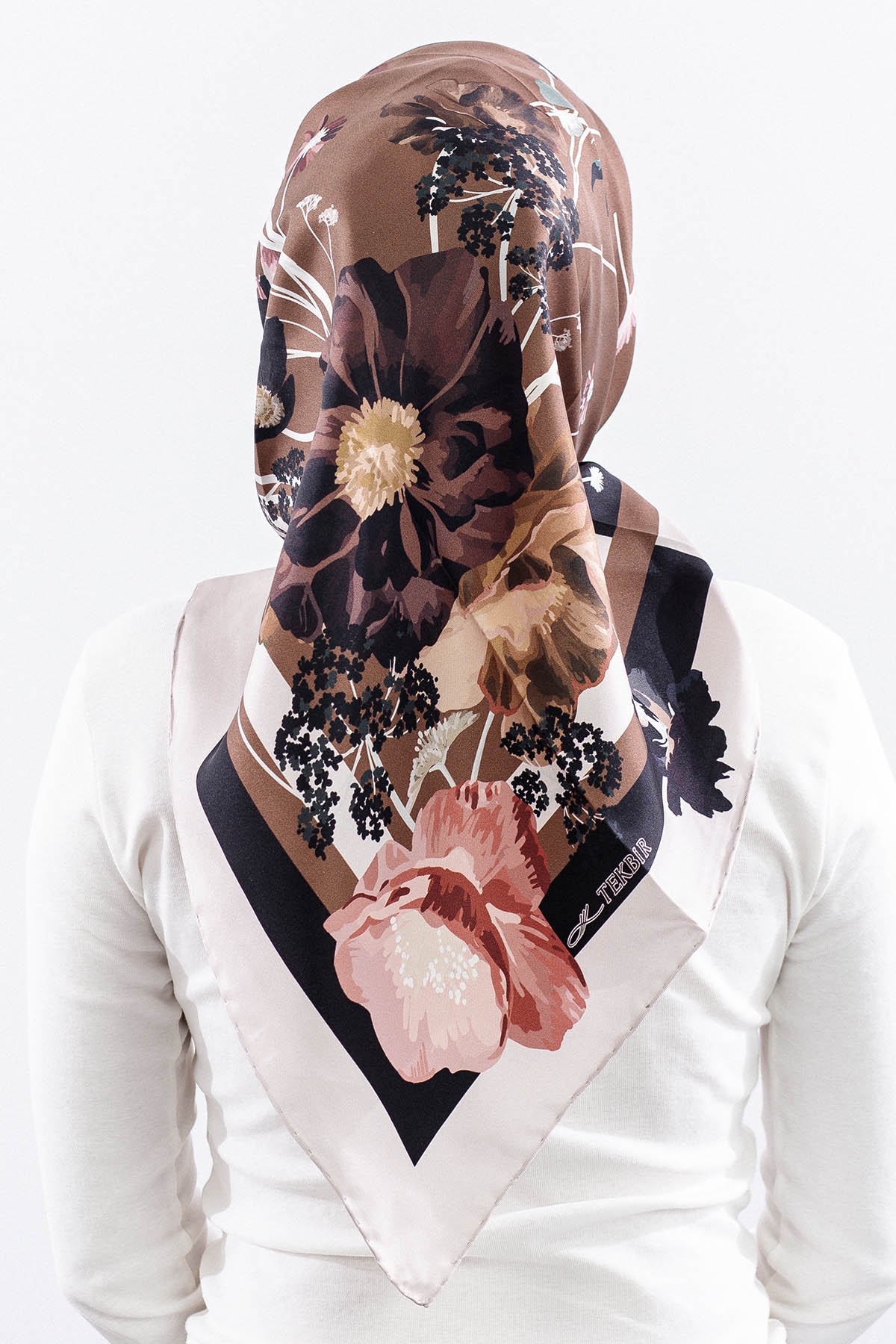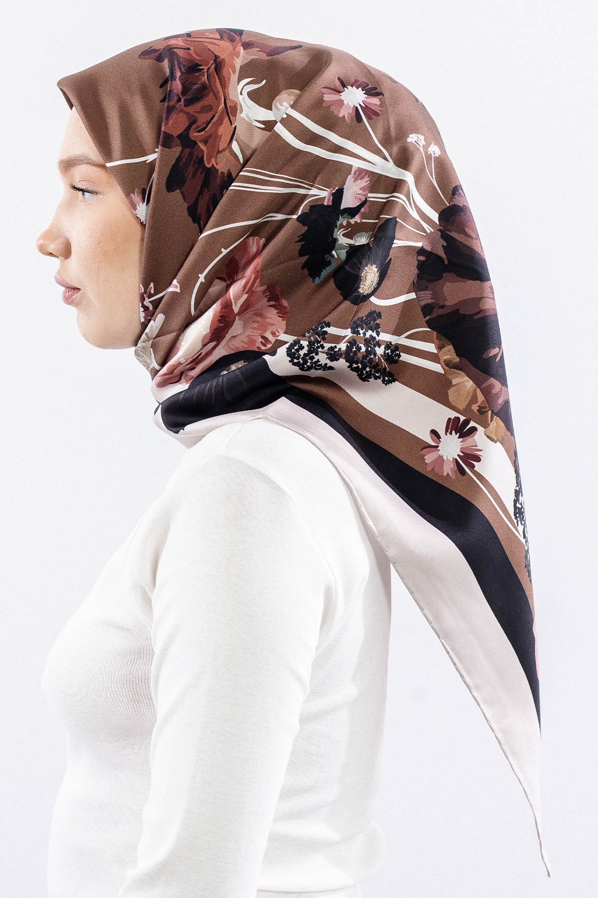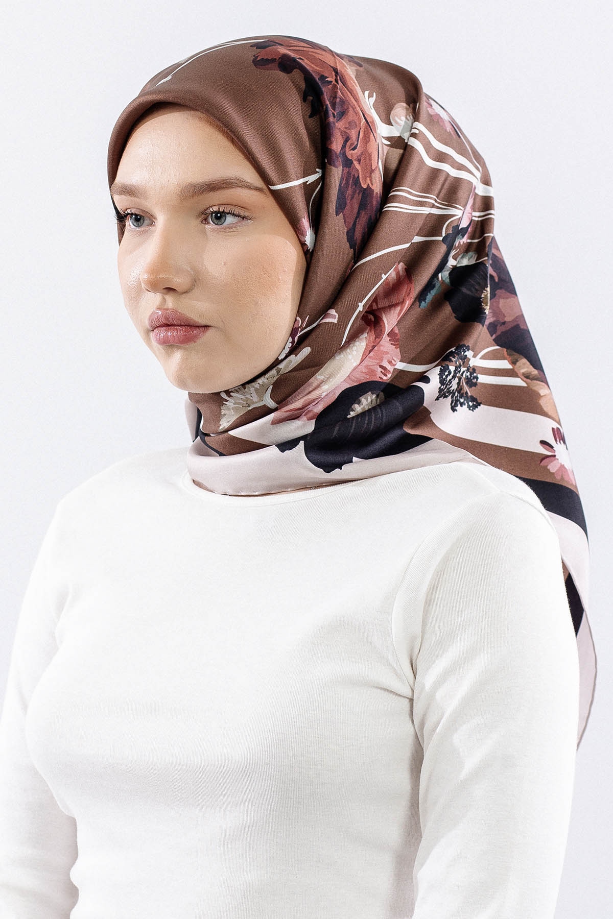 Dg14821 İpek Eşarp Nilufer Tvil Kumas - Kahve - 1