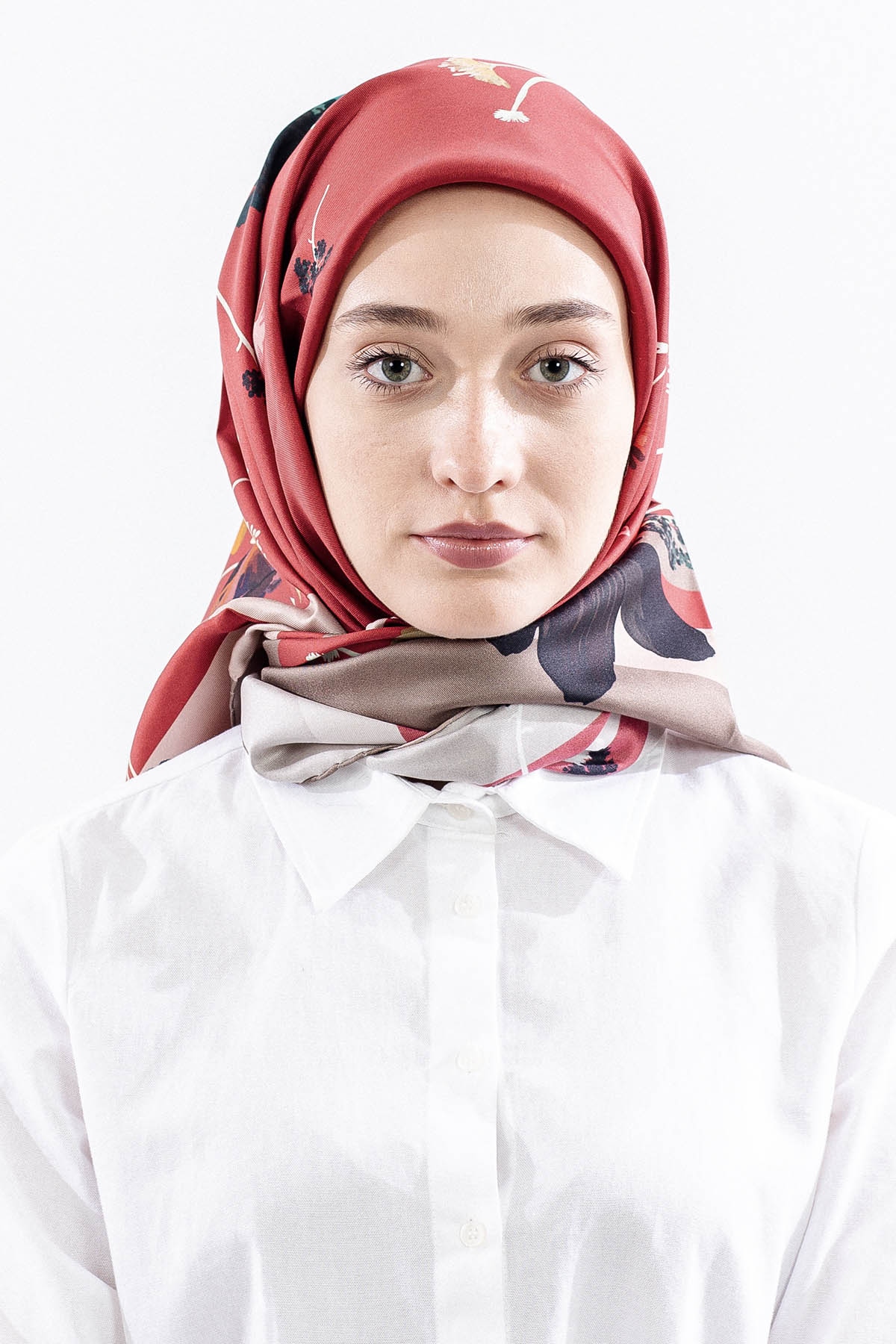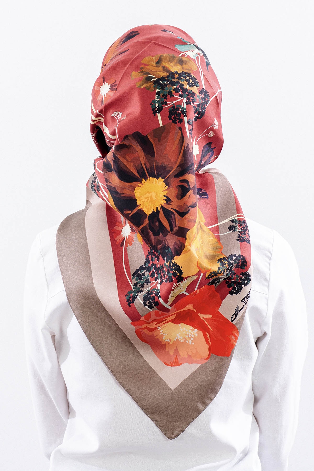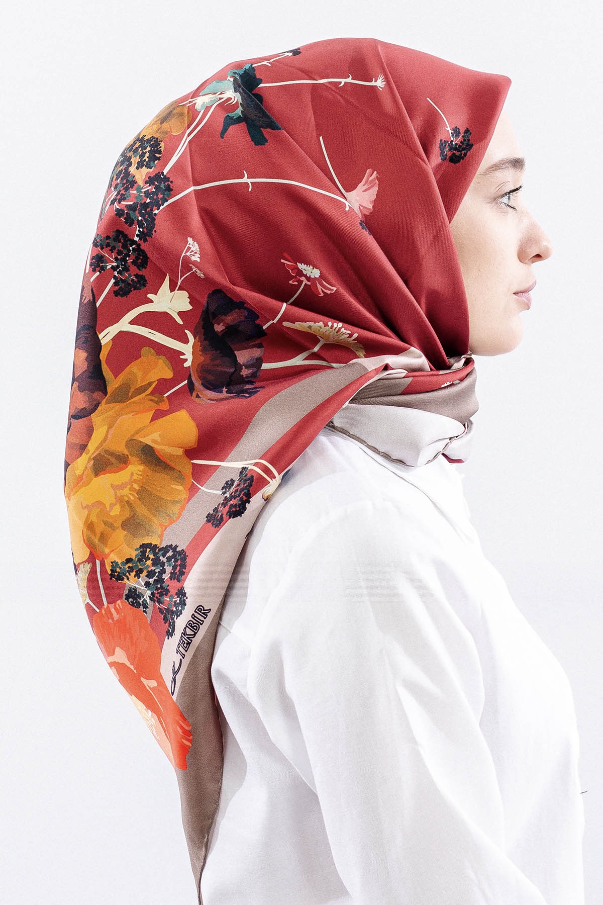 Dg14821 İpek Eşarp Nilufer Tvil Kumas - Kirmizi - 1