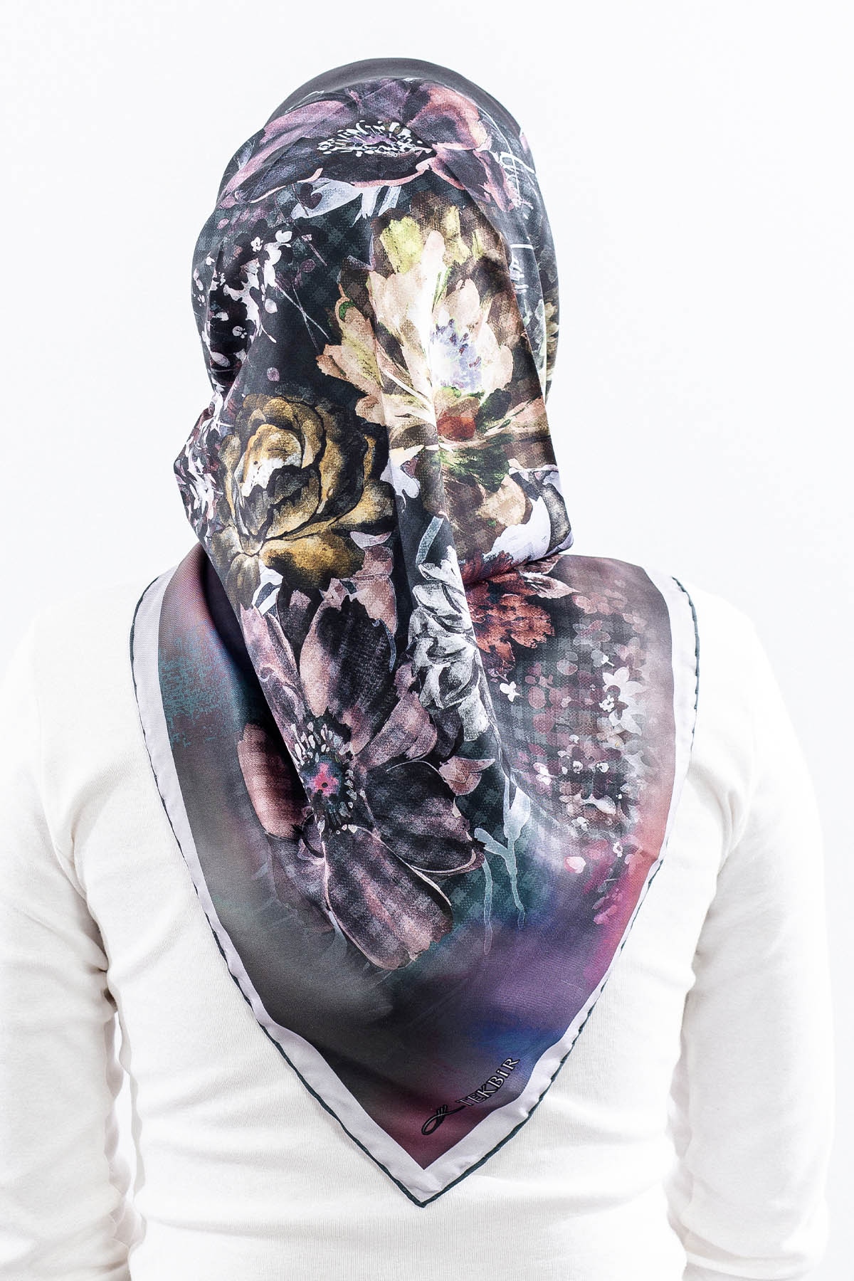 Dg14823 Eşarp Polyester Kumas Cicek Kare - Petrol - 1
