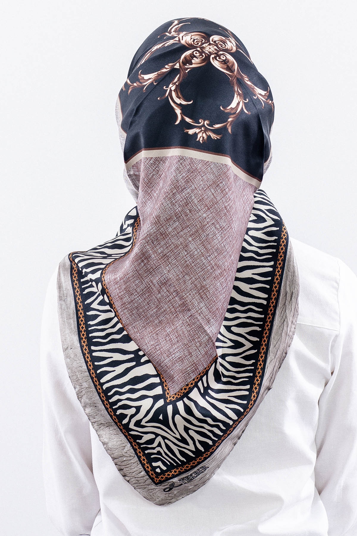 Dg14824 Eşarp Polyester Kumas Zincir Desen - Kahve - 1