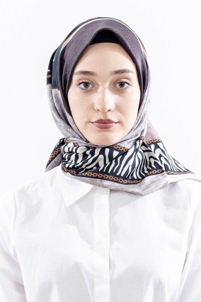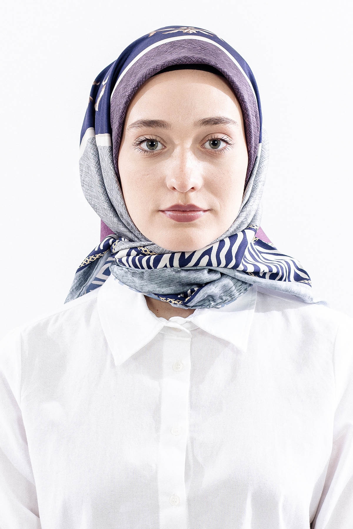Dg14824 Eşarp Polyester Kumas Zincir Desen - Lacivert_pudra - 1