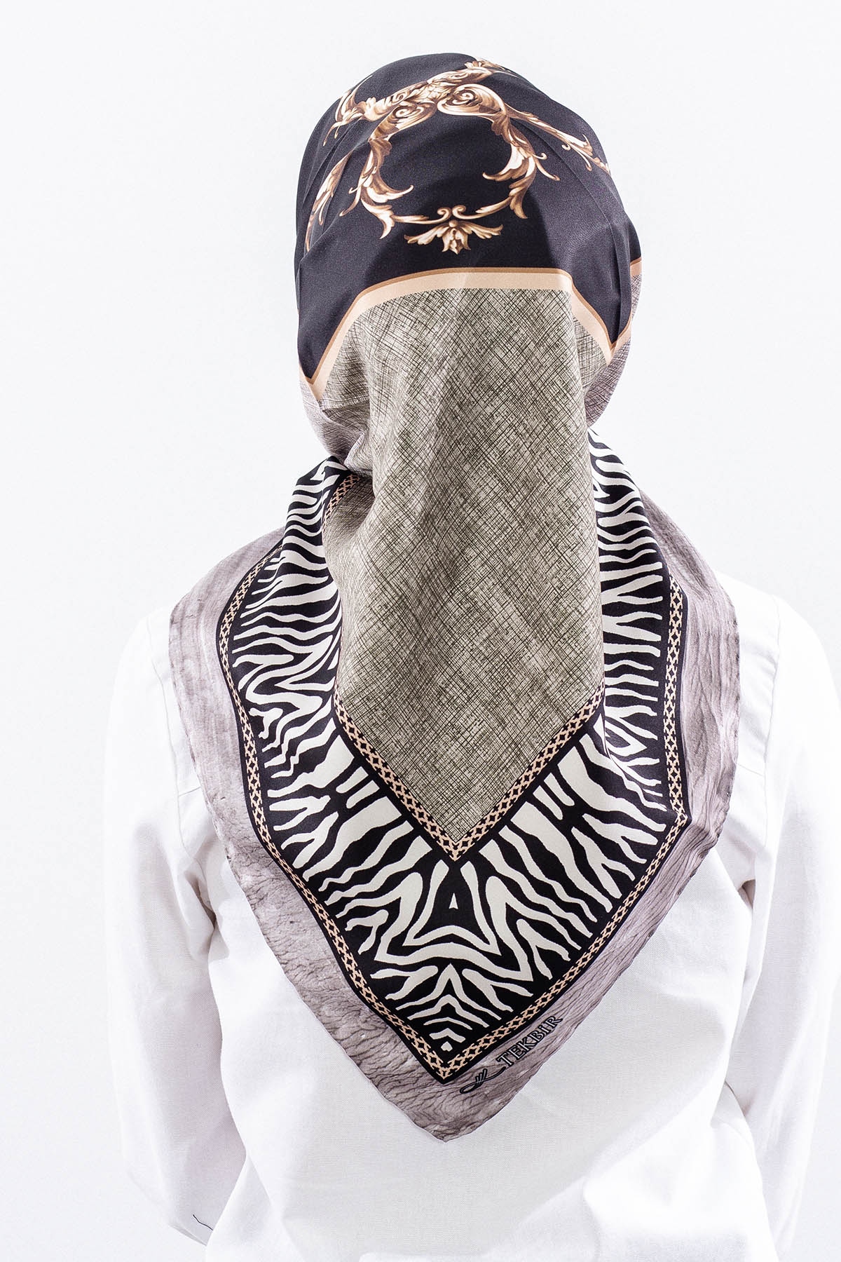 Dg14824 Eşarp Polyester Kumas Zincir Desen - Siyah - 1