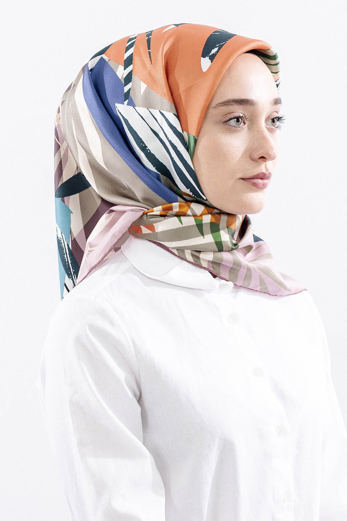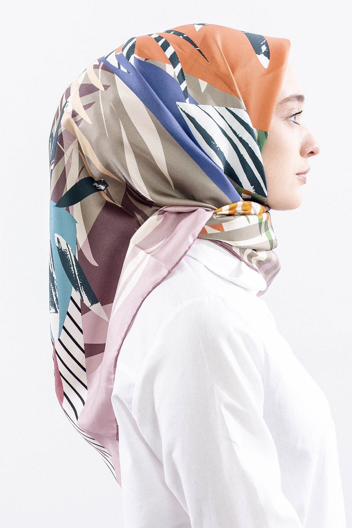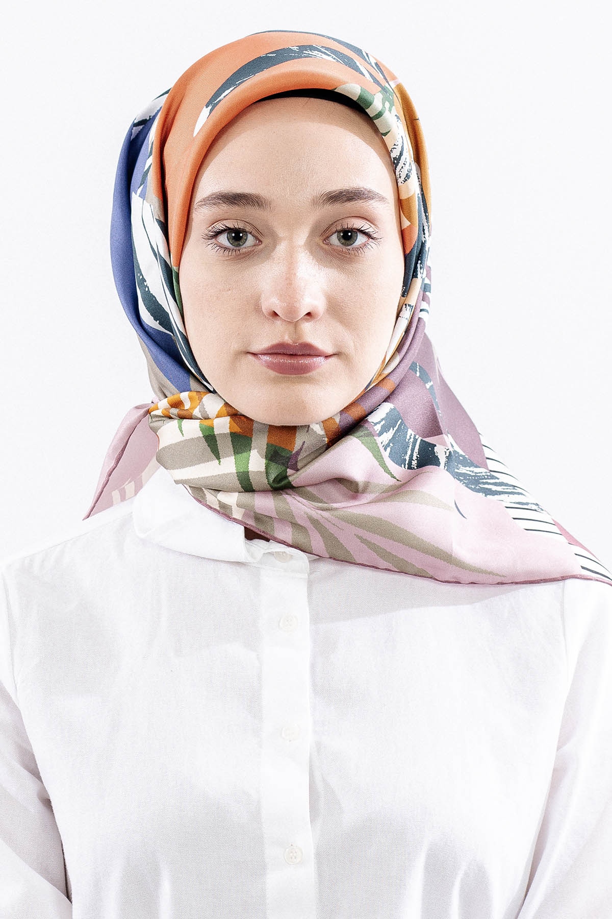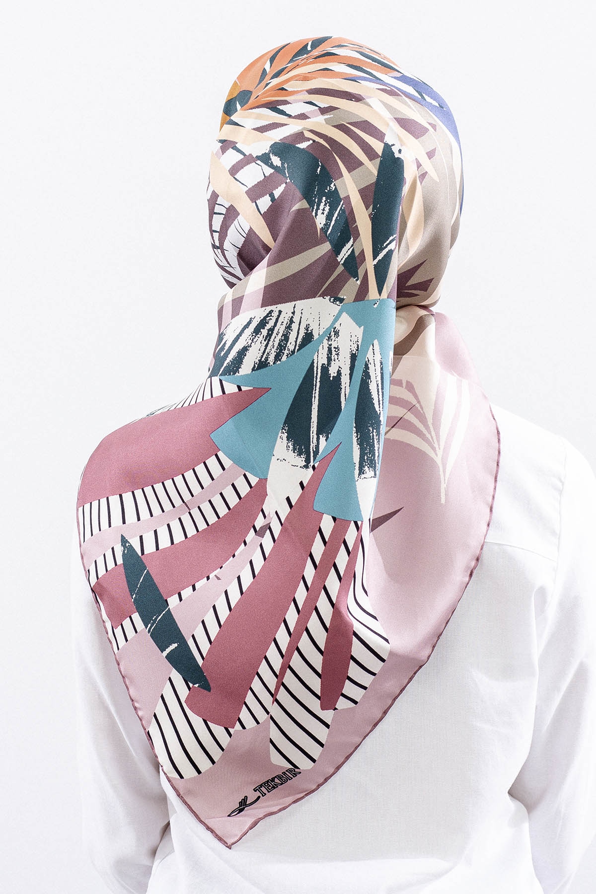 Dg14825 İpek Eşarp Palmiye Desen Tvil Kumas - Pudra