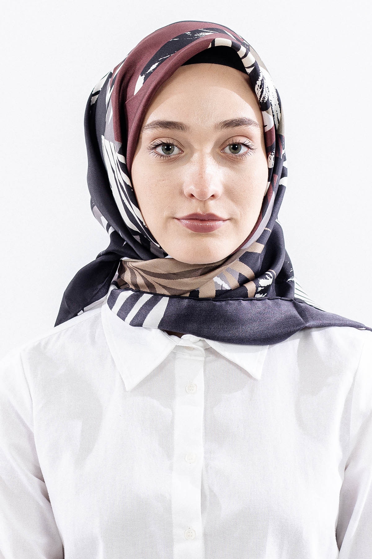 Dg14825 İpek Eşarp Palmiye Desen Tvil Kumas - Siyah - 1