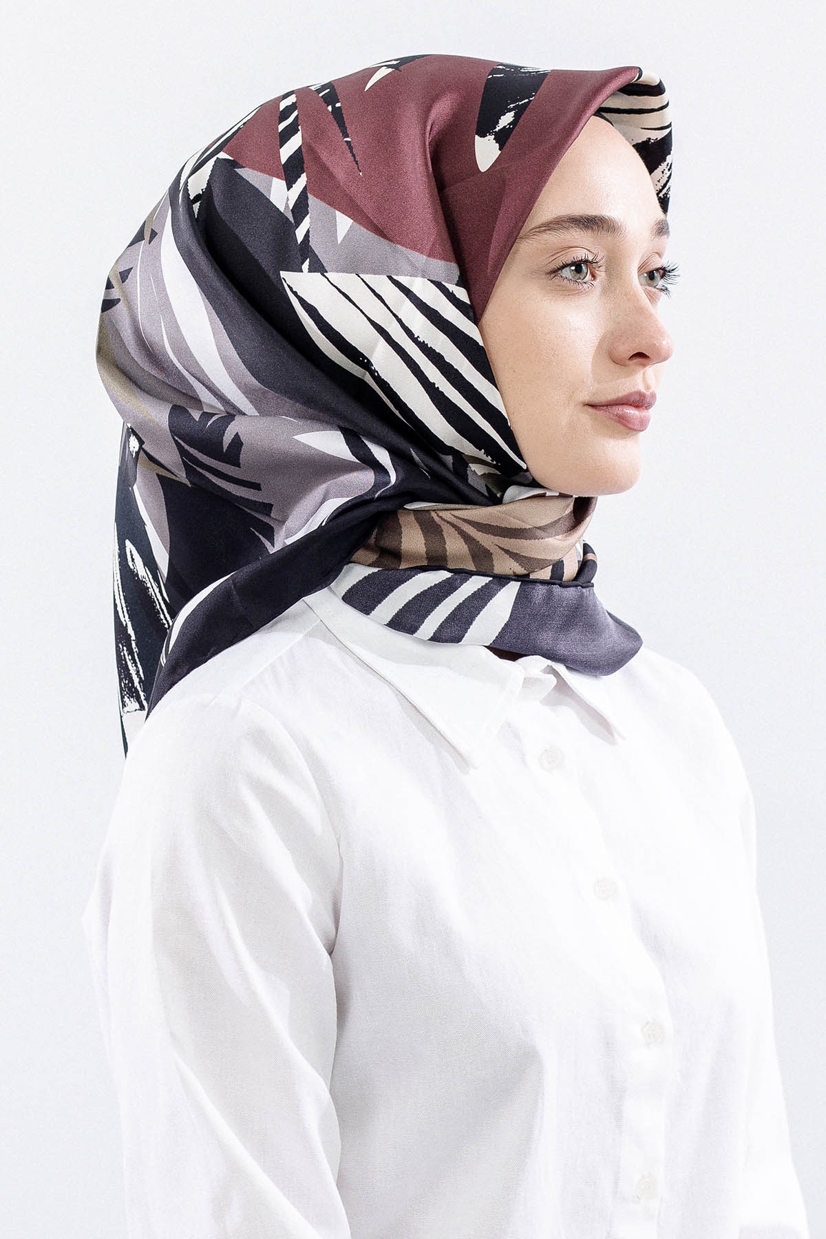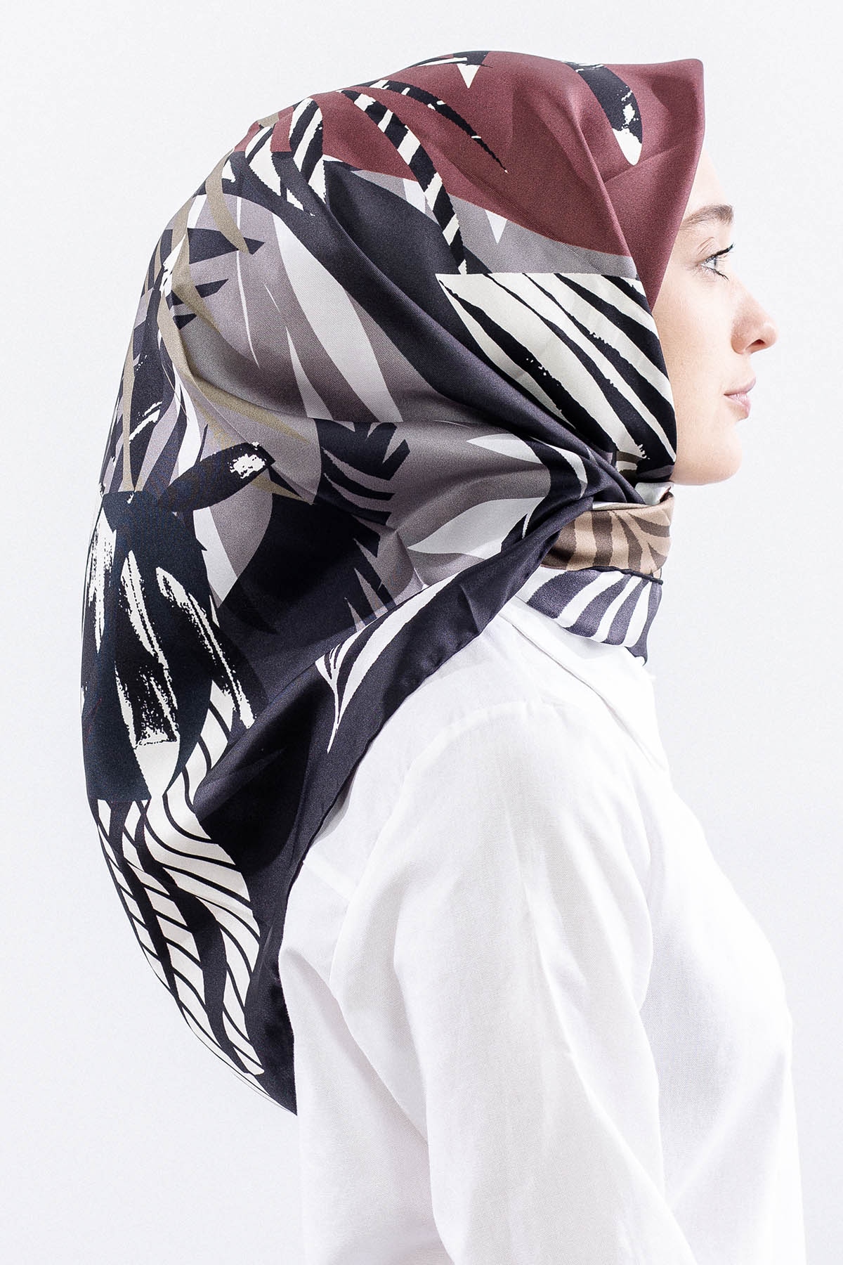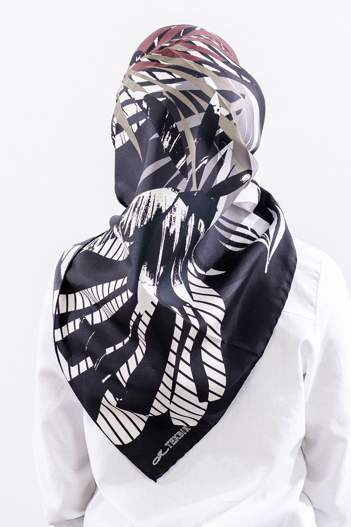 Dg14825 İpek Eşarp Palmiye Desen Tvil Kumas - Siyah