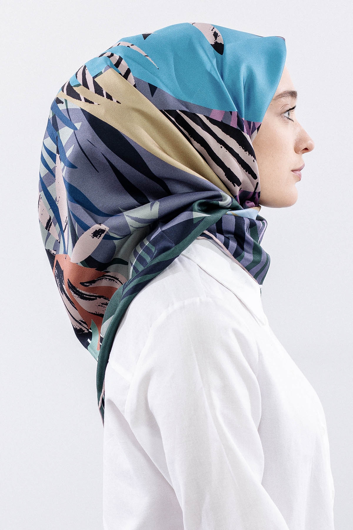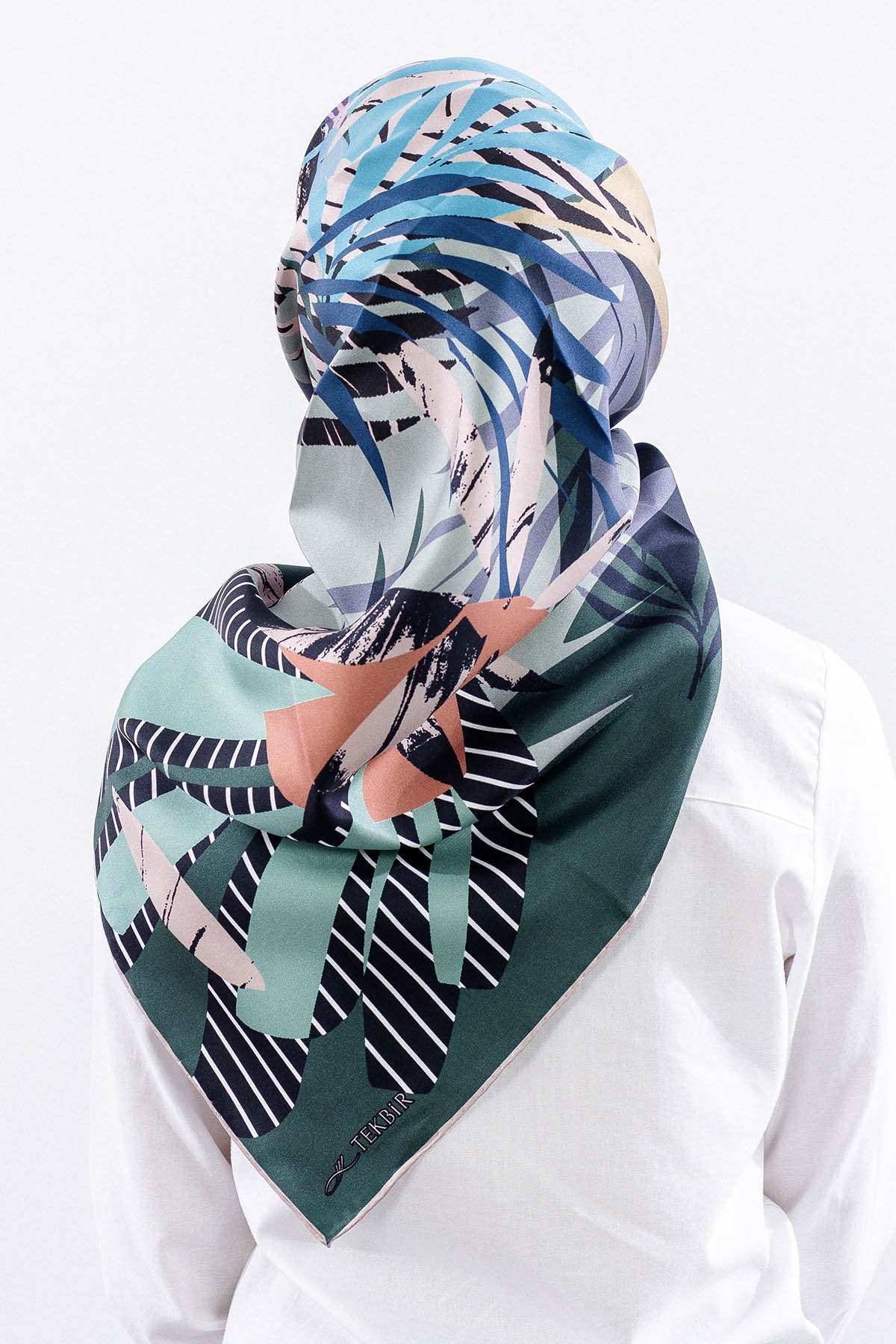 Dg14825 İpek Eşarp Palmiye Desen Tvil Kumas - Yesil