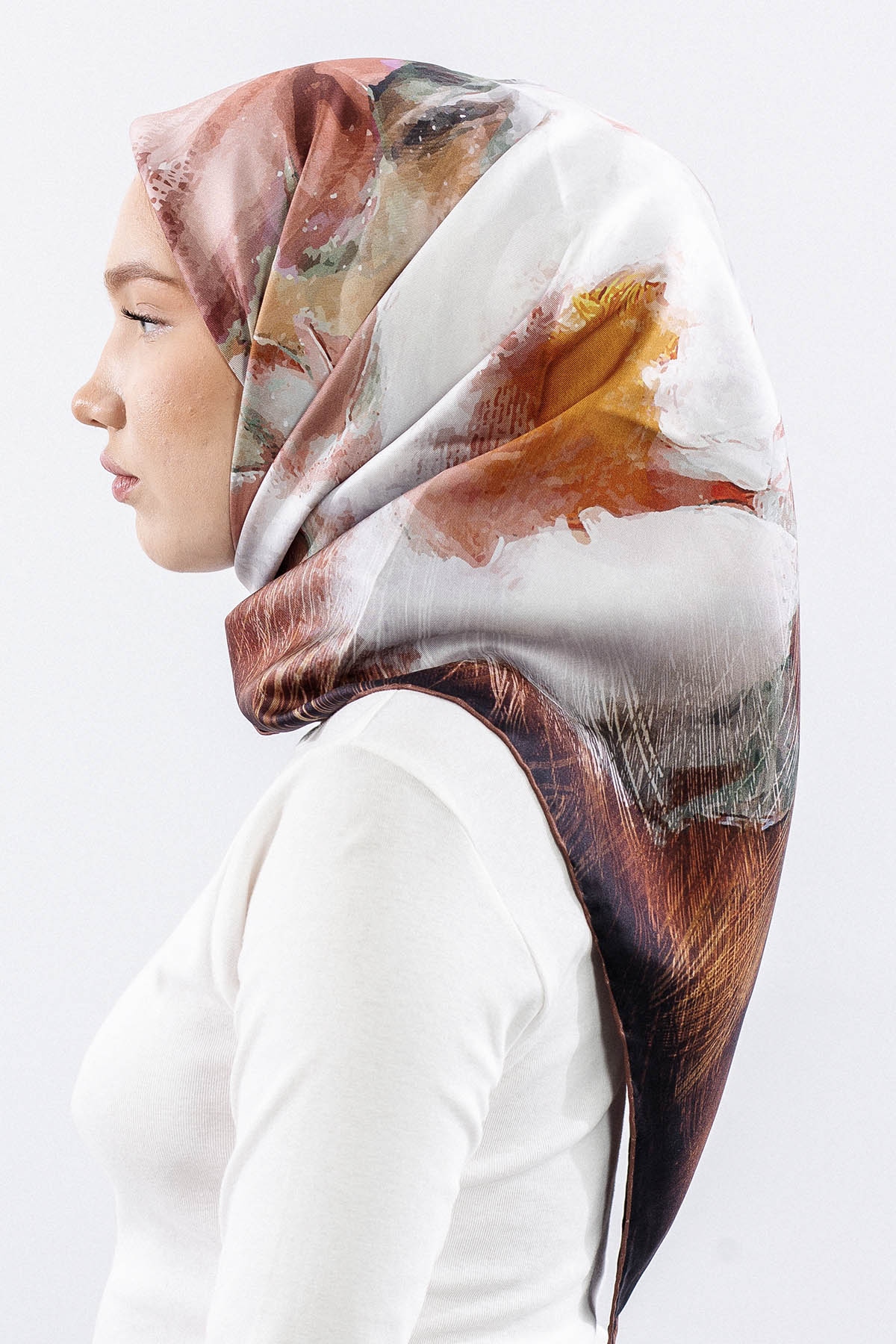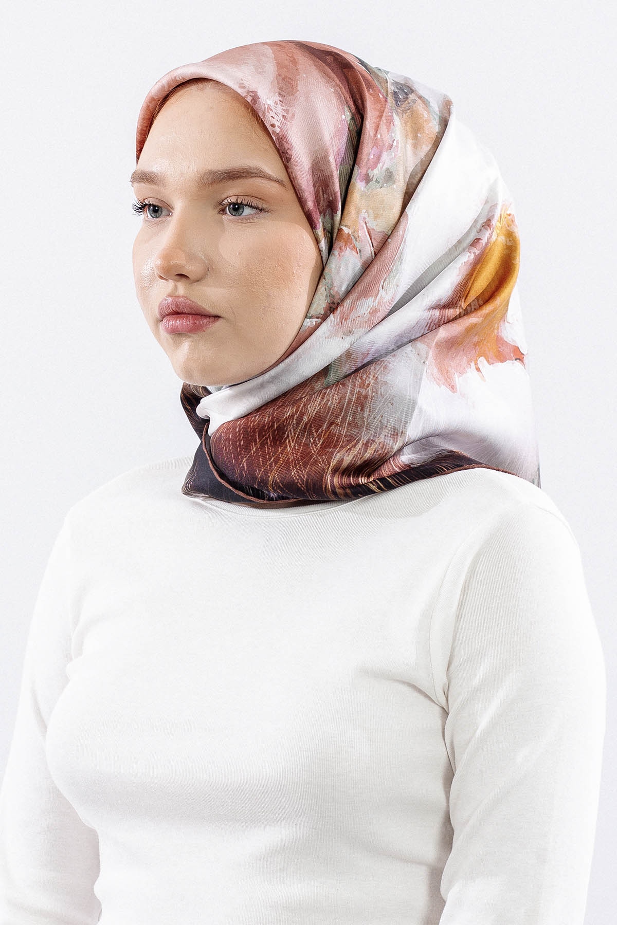 Dg14826 İpek Eşarp Flu Gul Tvil Kumas - Kahve
