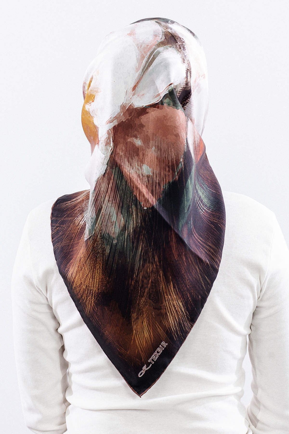 Dg14826 İpek Eşarp Flu Gul Tvil Kumas - Kahve - 2