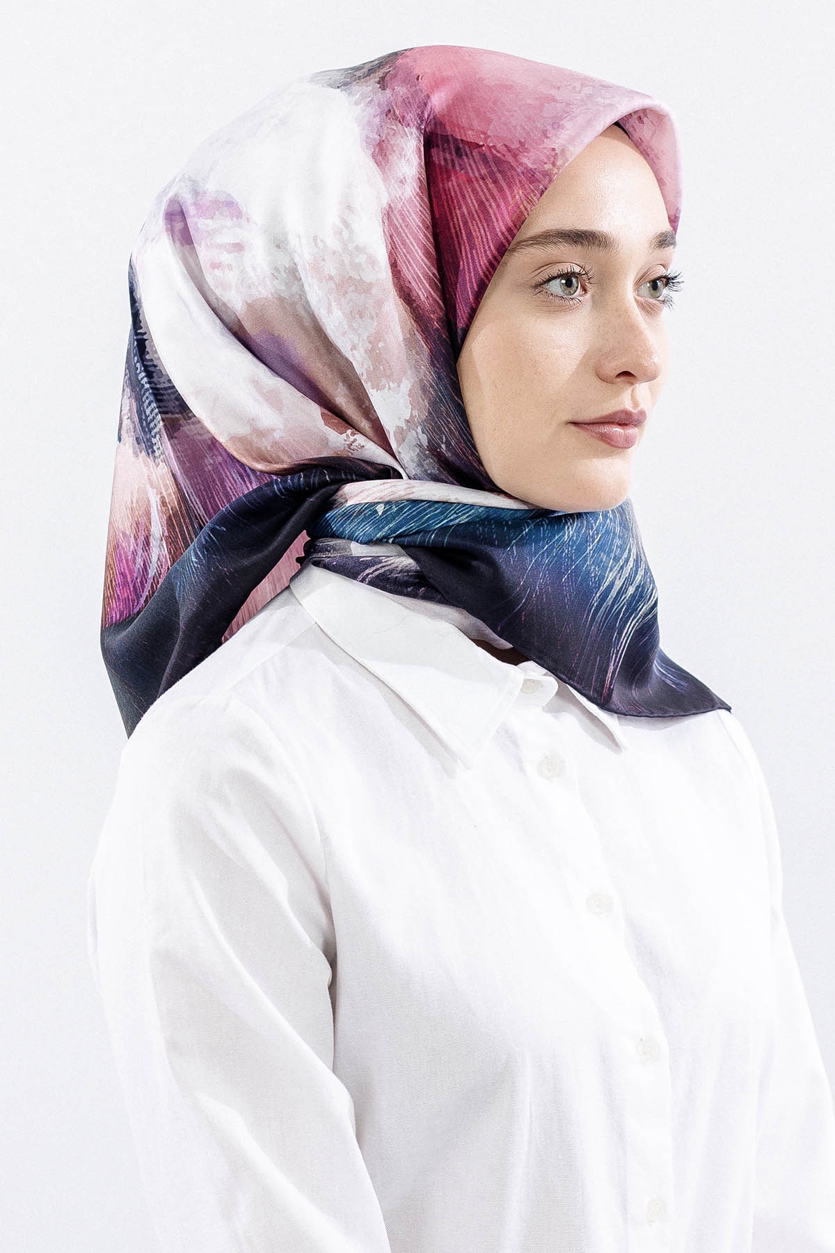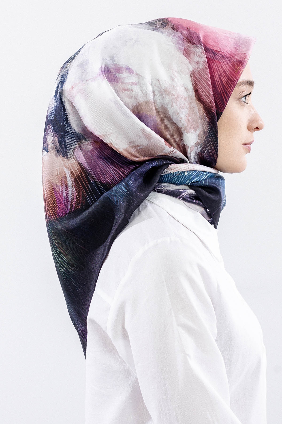 Dg14826 İpek Eşarp Flu Gul Tvil Kumas - Lacivert_pudra - 4