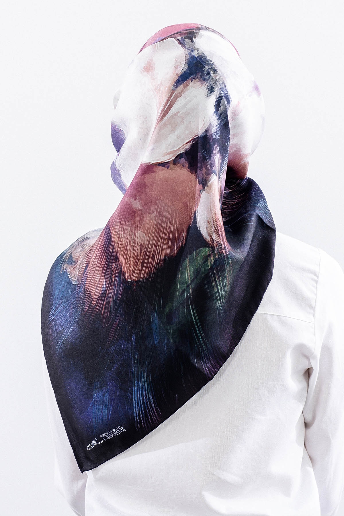 Dg14826 İpek Eşarp Flu Gul Tvil Kumas - Lacivert_pudra - 1